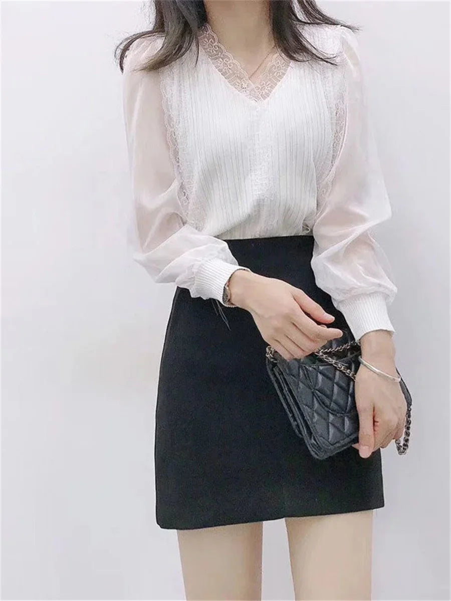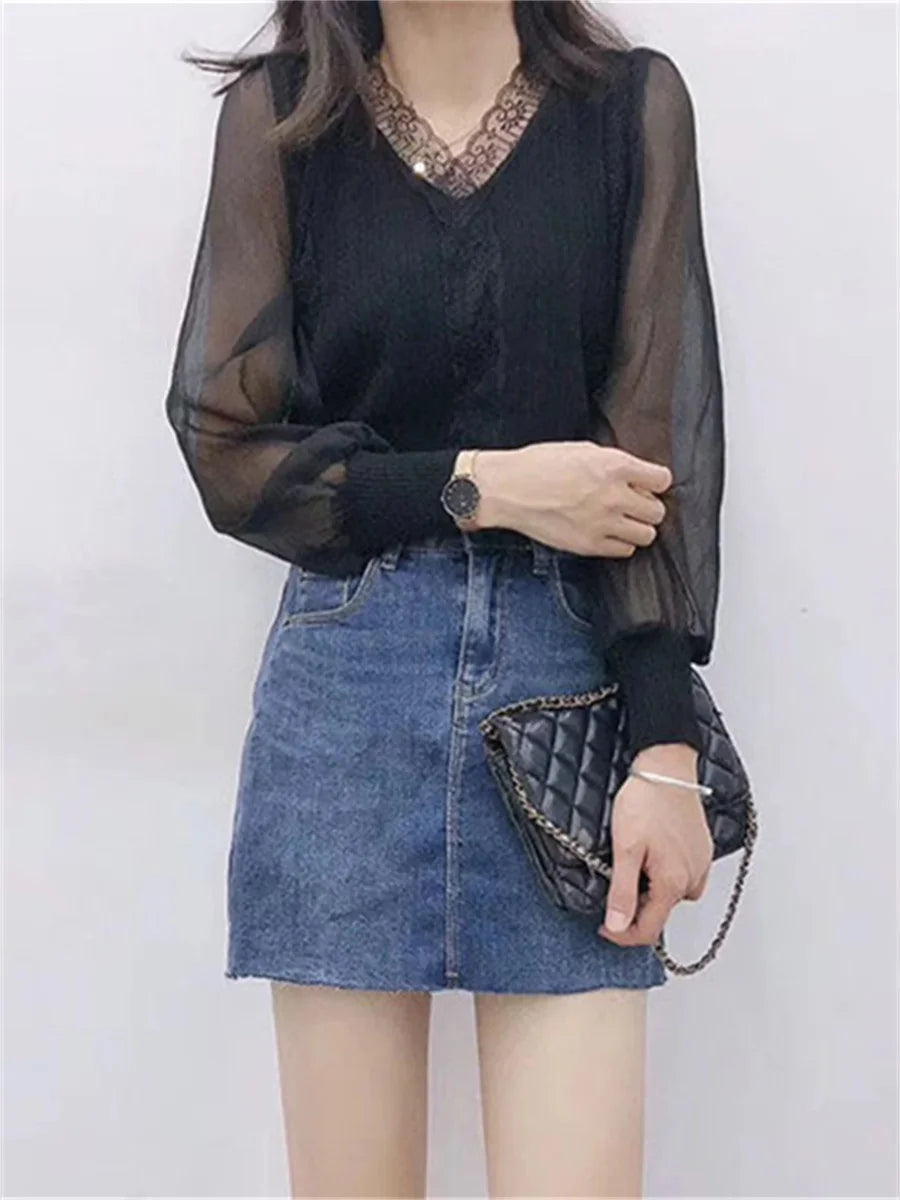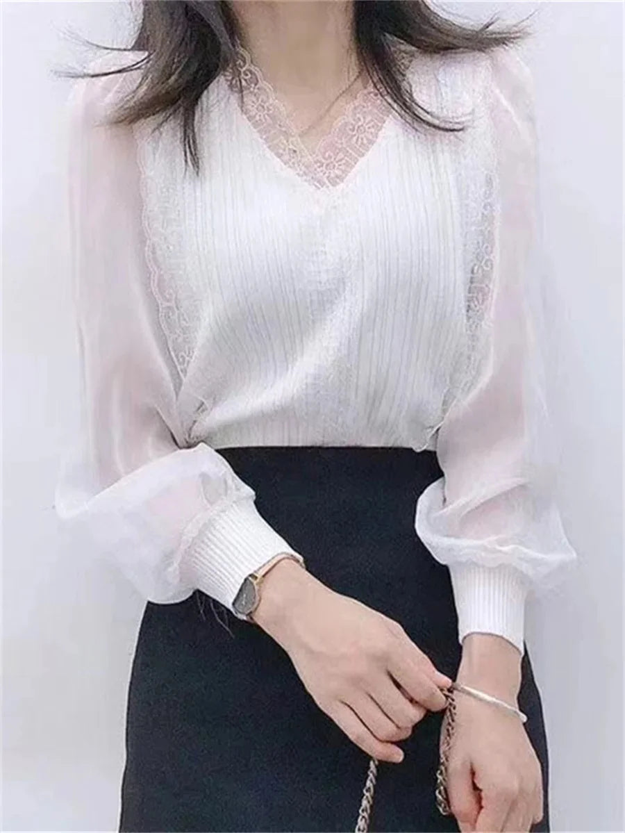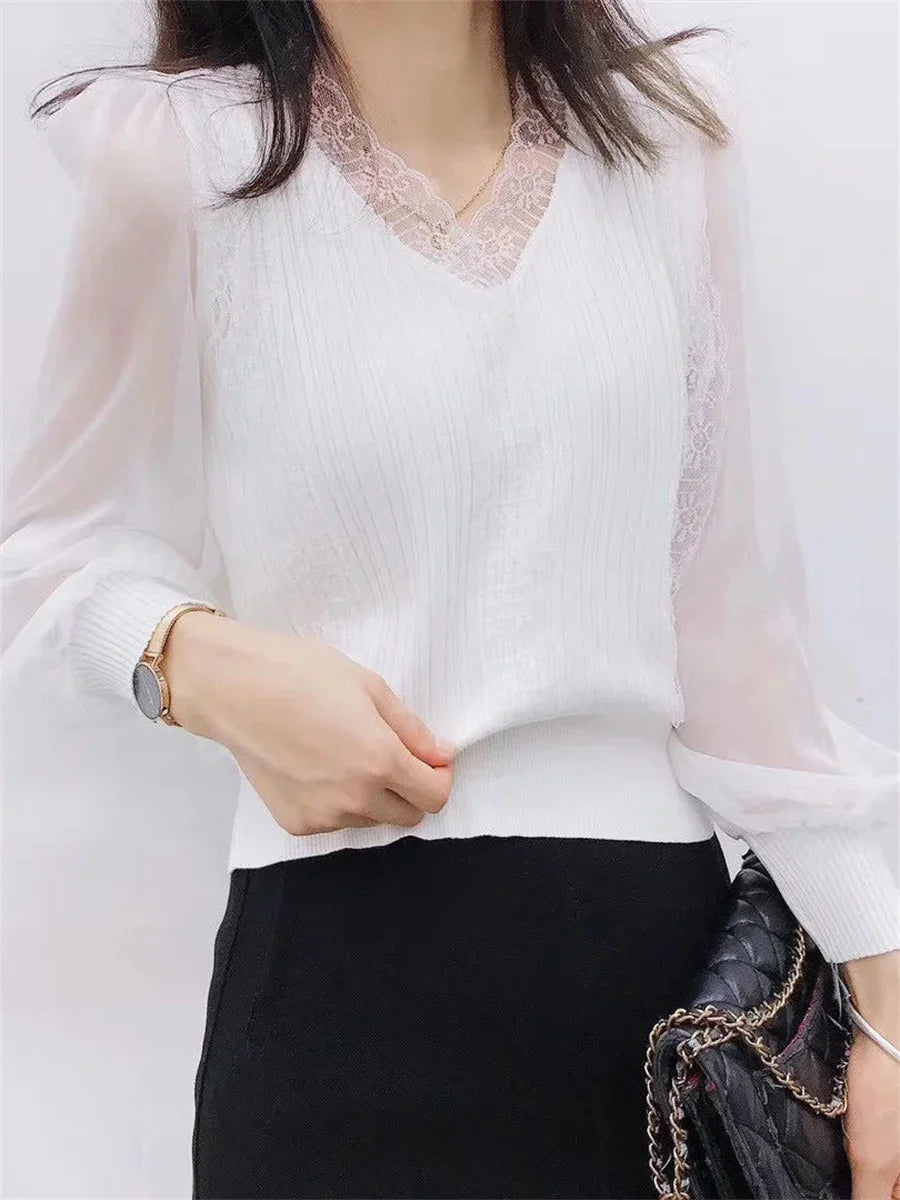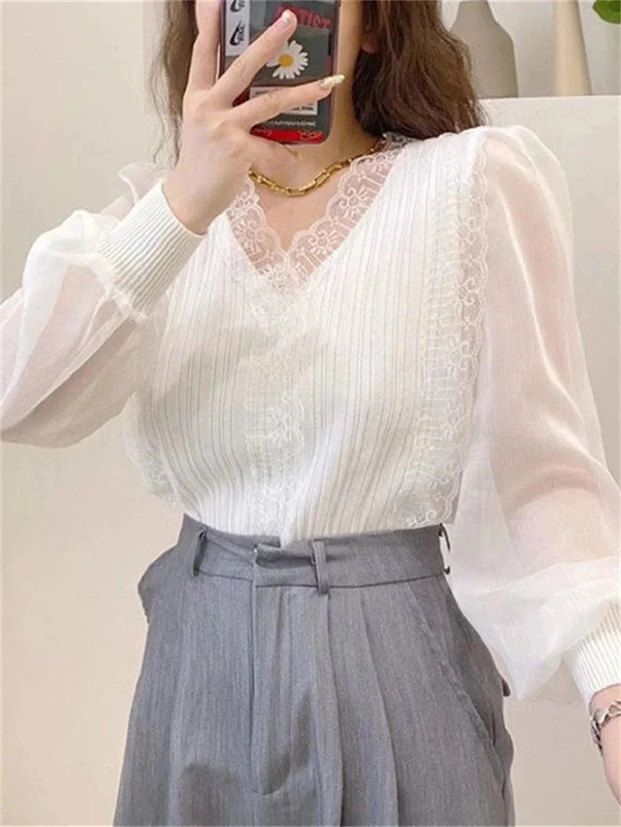 Sublimez votre garde-robe avec cet élégant chemisier en dentelle à col V. Parfait pour le printemps et l'automne, ce haut arbore un magnifique patchwork de dentelle et une coupe ajustée flatteuse. Son design à la fois décontracté et chic en fait une pièce polyvalente pour toutes les occasions, du bureau à la soirée décontractée.