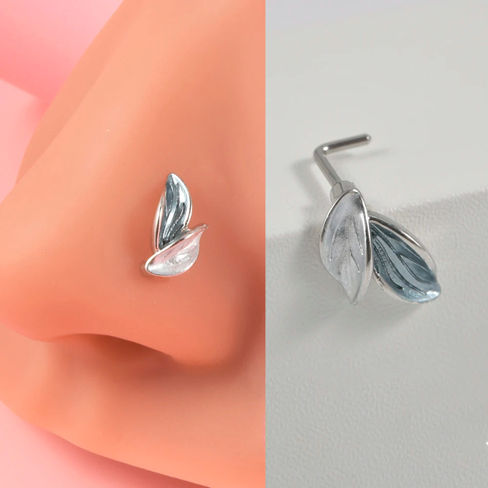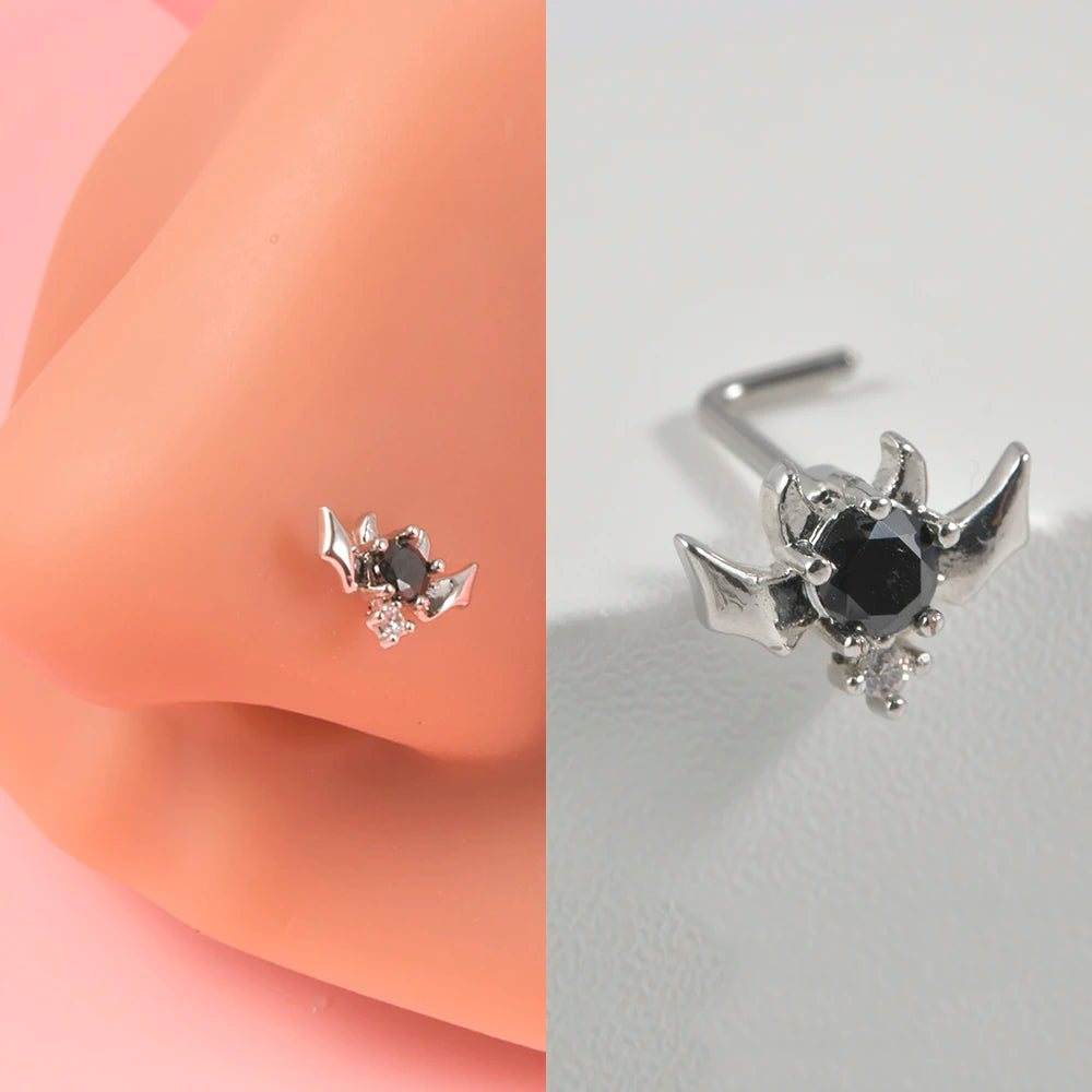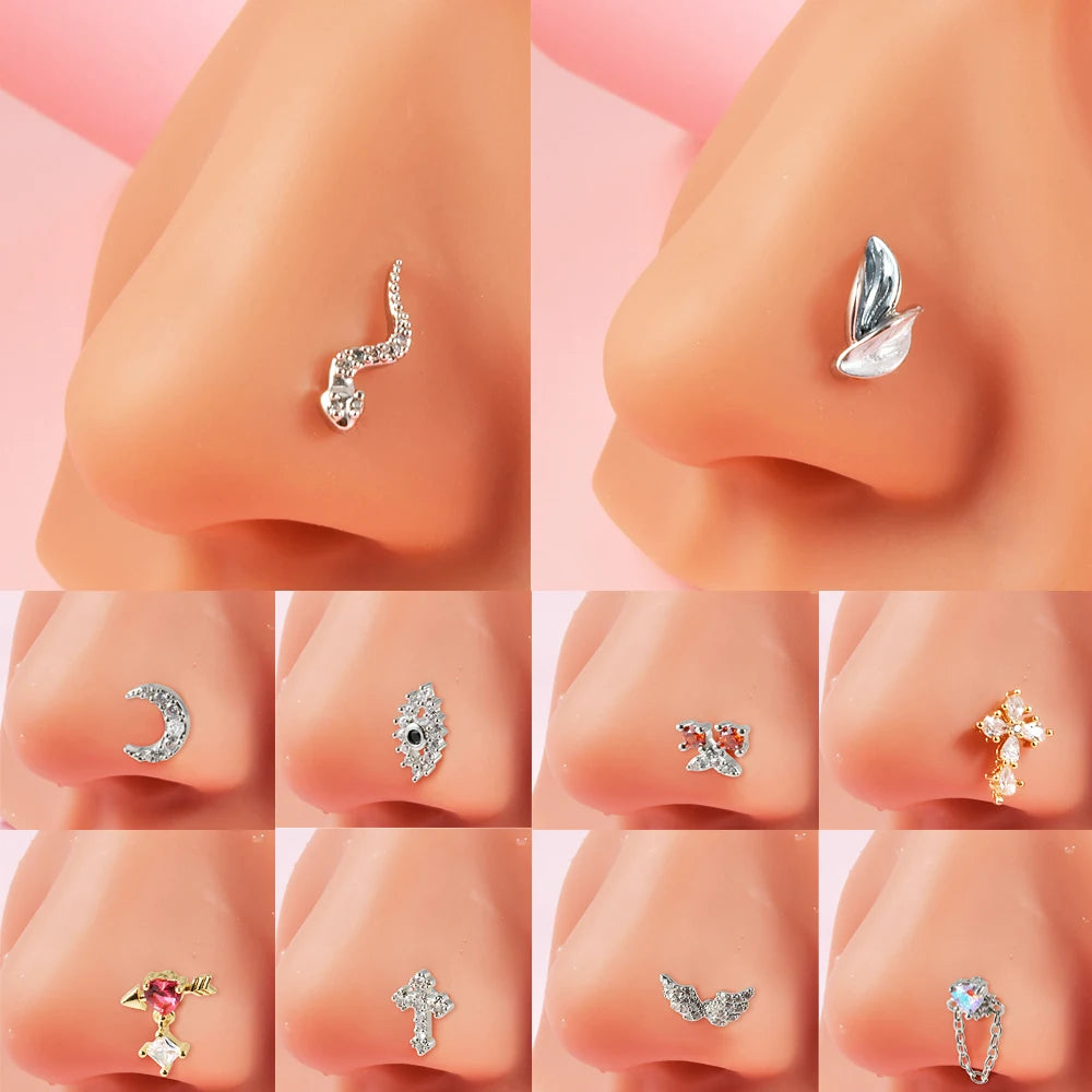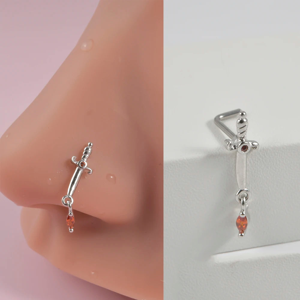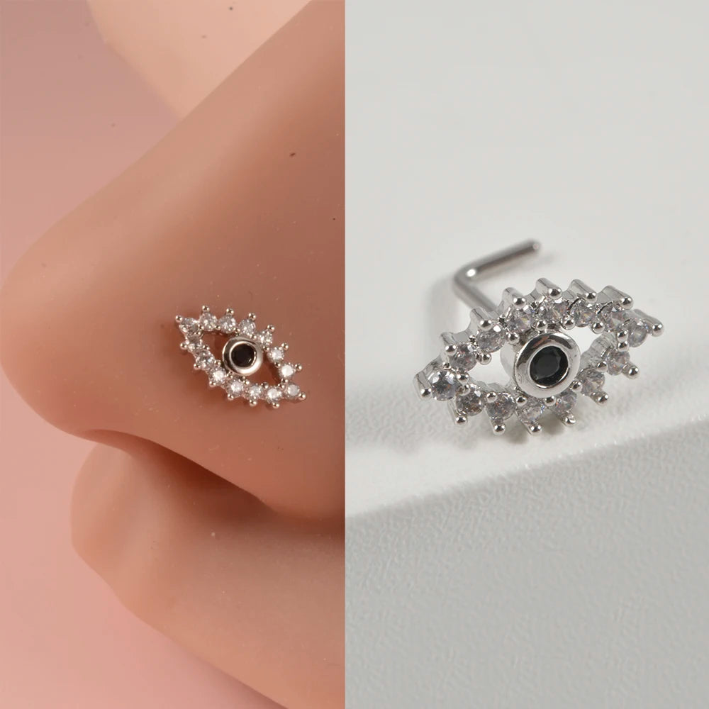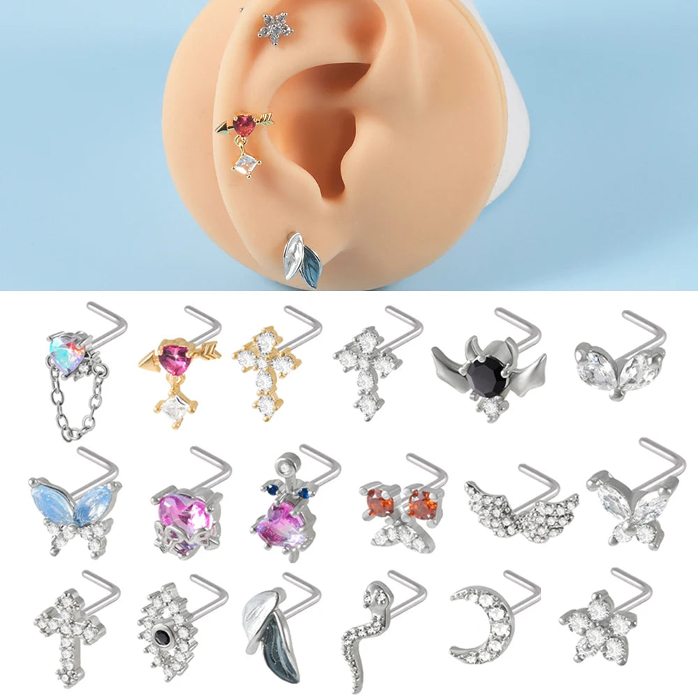 Anneaux de nez en cristal en forme de L en acier chirurgical pour femmes