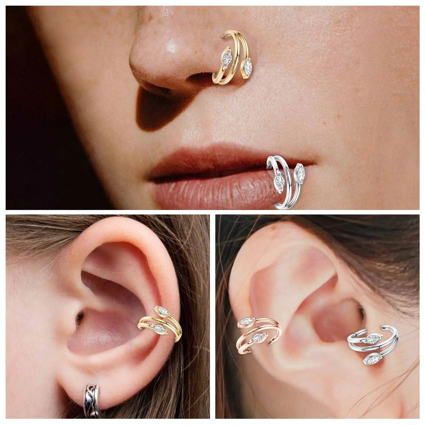 Anneau de nez et boucles d'oreilles en conque en Zircon