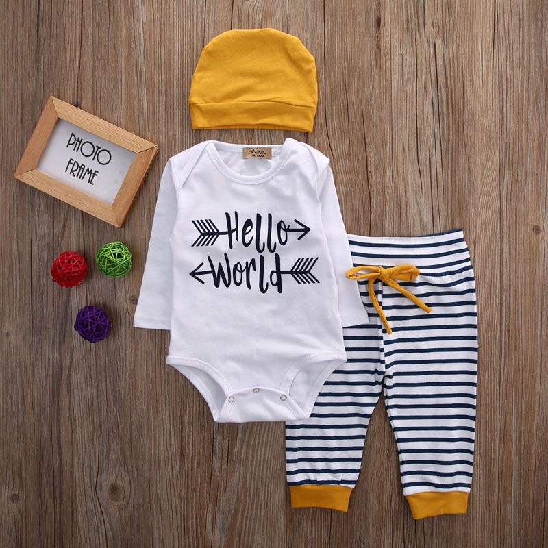 3pcs set Newborn Baby Clothes Long Sleeve Striped Clothing