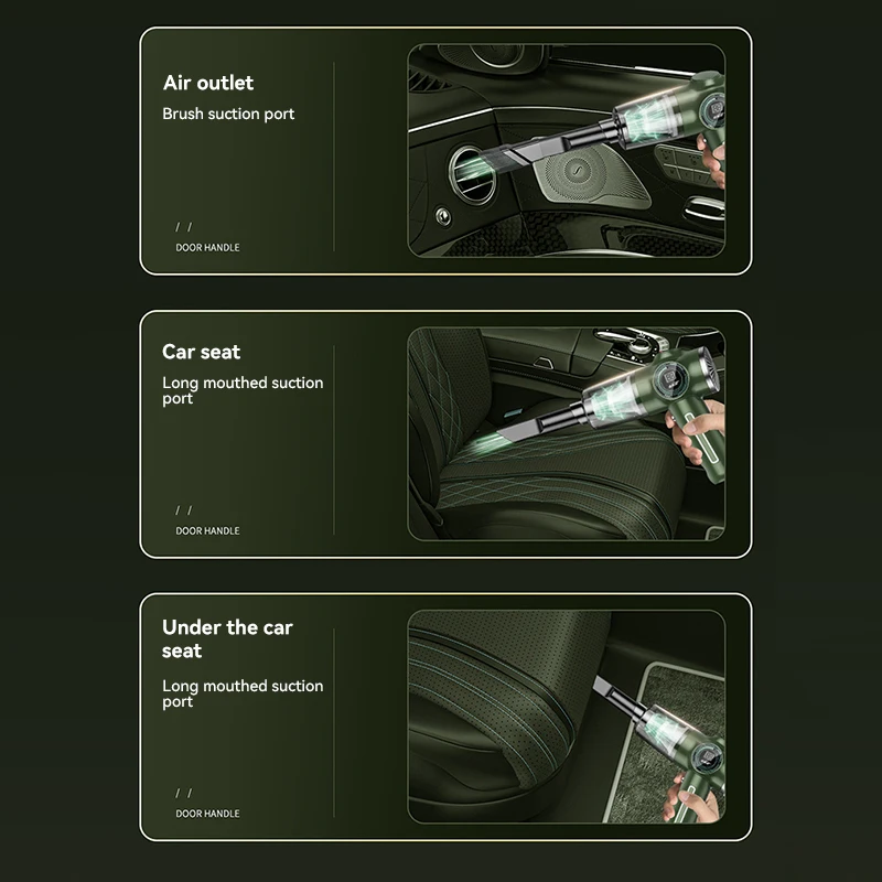 Handheld car vacuum cleaners are versatile tools that can be used to clean various surfaces inside the vehicle, including carpets, upholstery, floor mats, and hard-to-reach areas like between seats and under the dashboard.