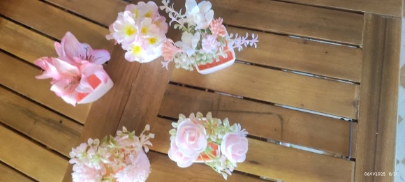 5PCS, Mini Pink Artificial Flower Potted Plant, Indoor Desktop Shelf Decoration