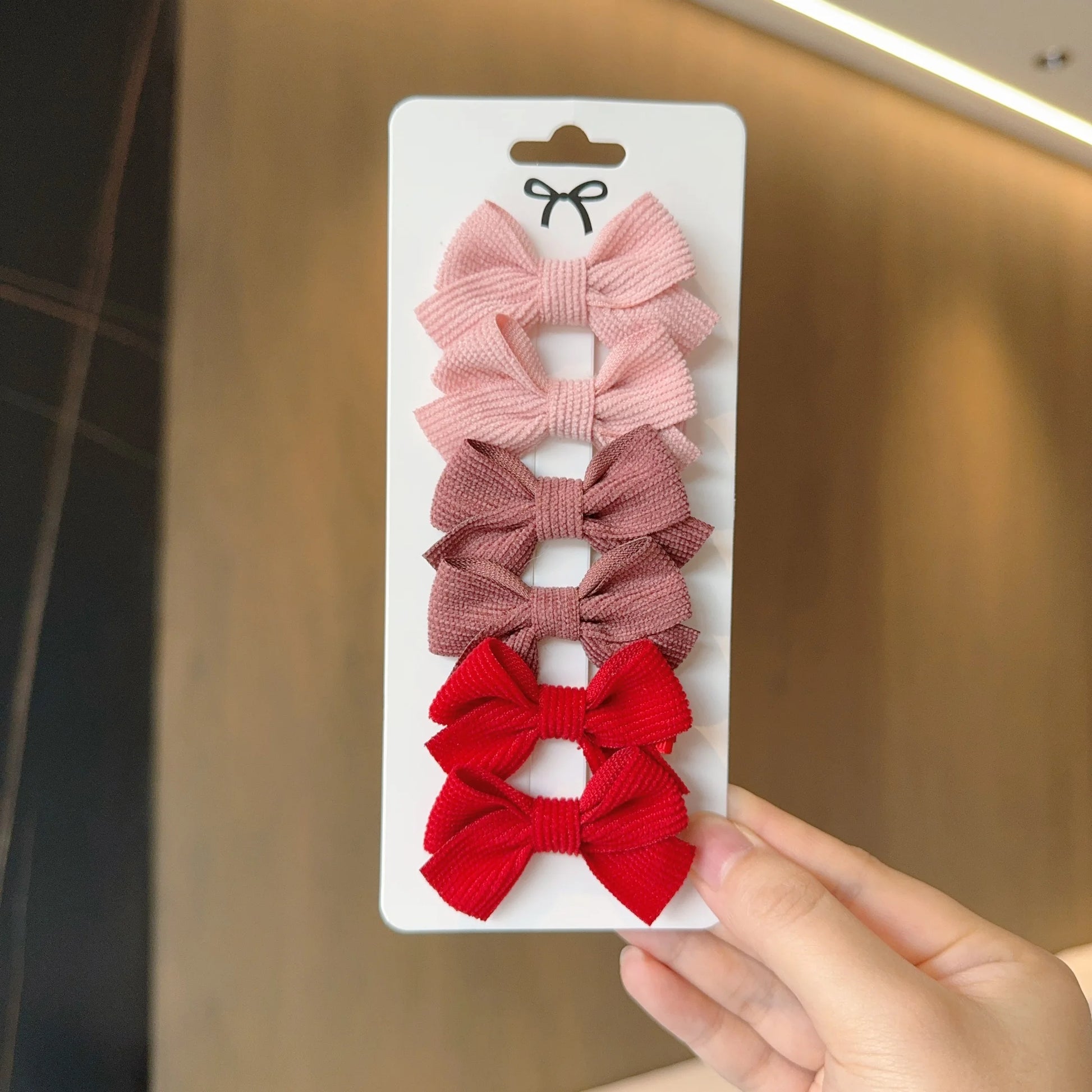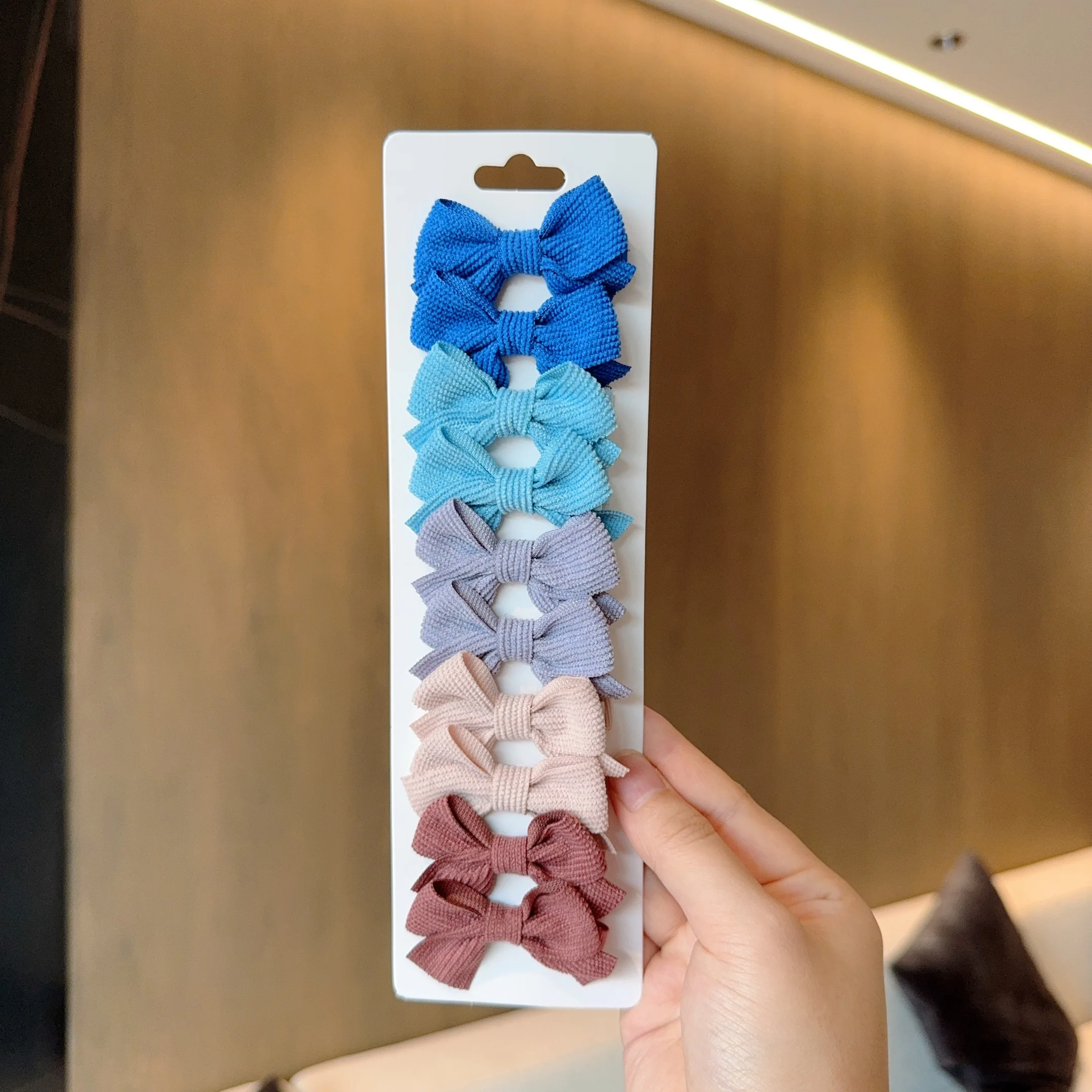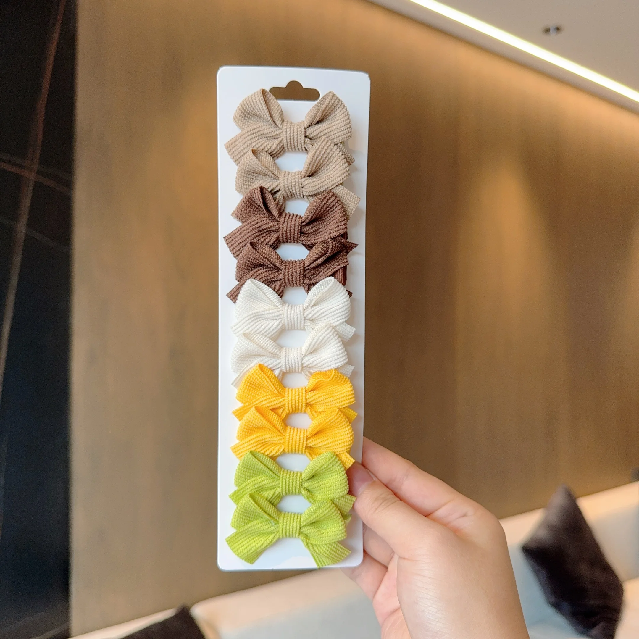 6/10pc Kids Solid Color Ribbon Bow Hair Clips