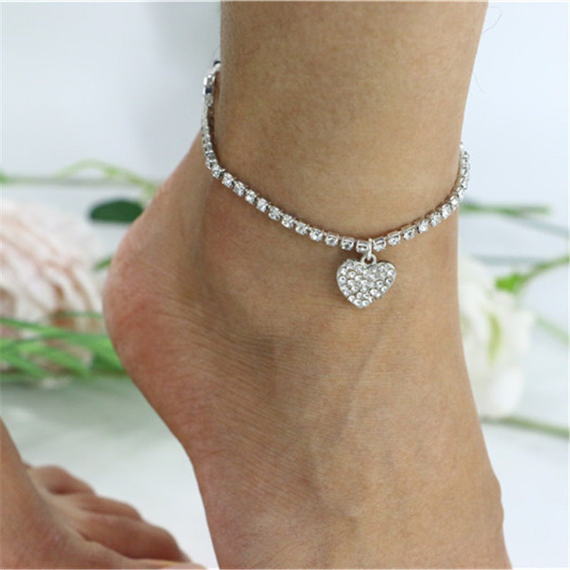 Alloy Crystal Heart-shaped Full Diamond Anklet