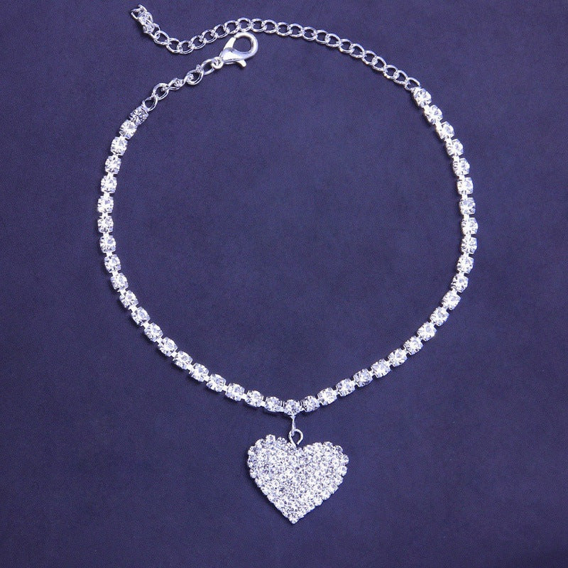 - Color: heart pendant rhinestone-anklet-Silver, heart pendant rhinestone-anklet-Gold