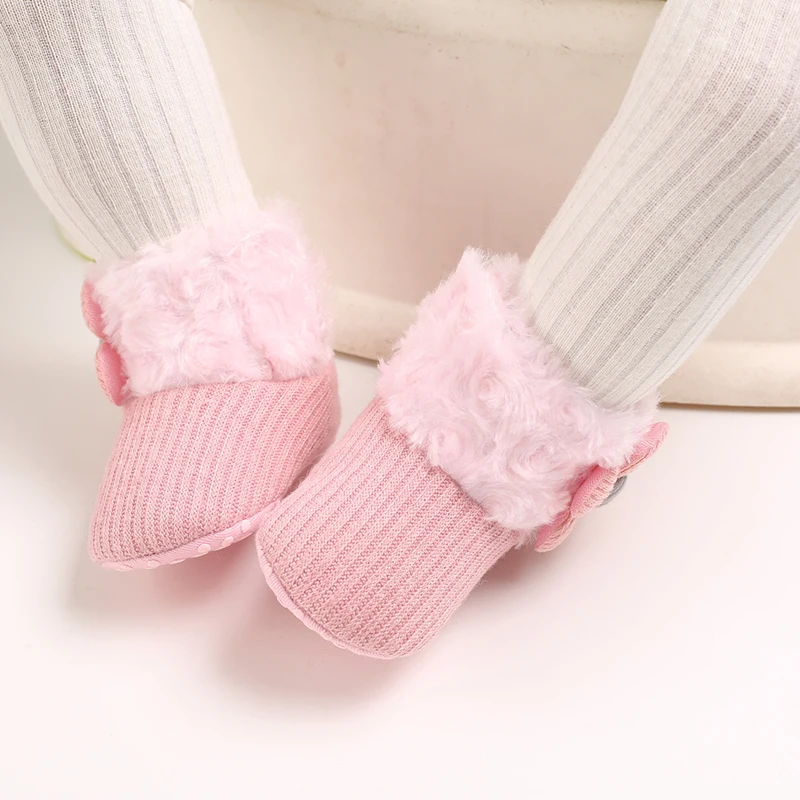 Classic 0-18M Baby Autumn/Winter Boots Girl Baby Boy Pink Warm Shoes Solid Fashion Preschool Puzzle Ball The First Walking Shoe