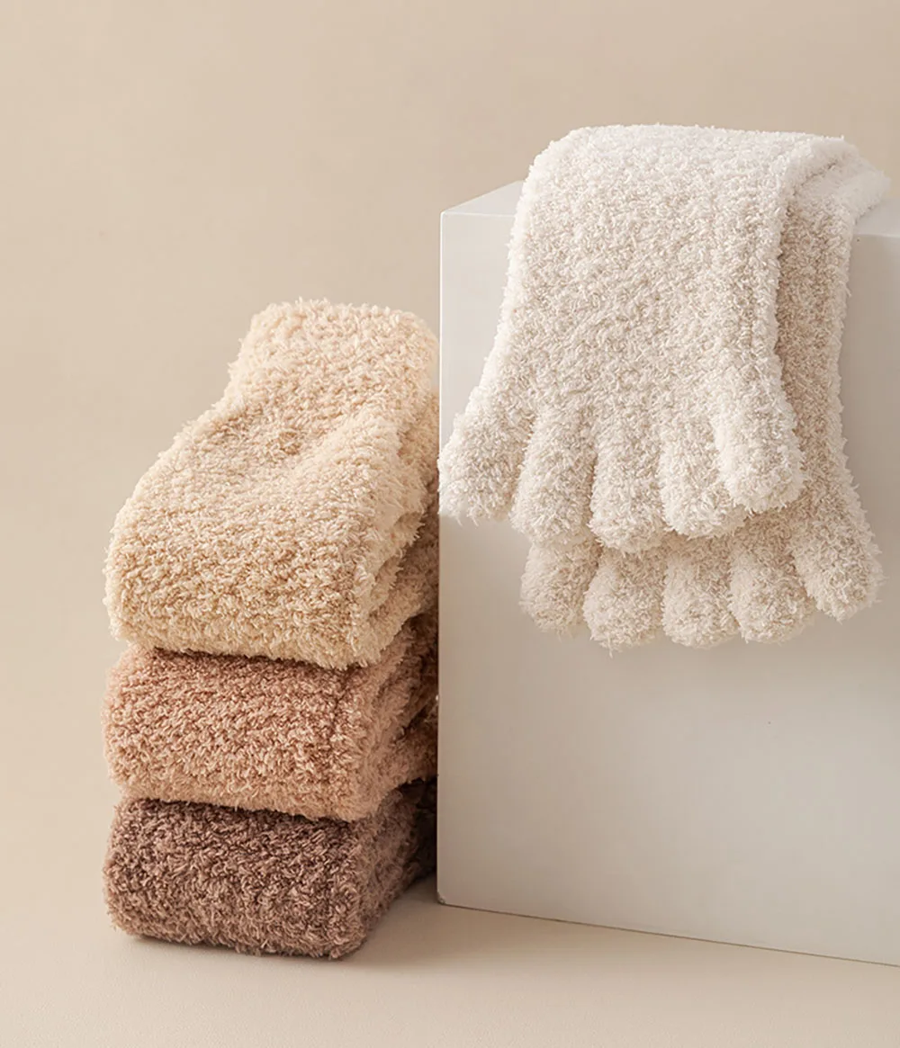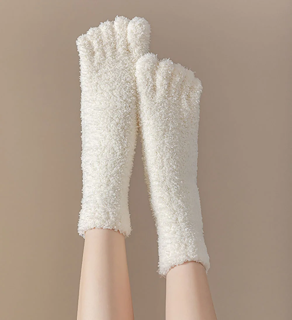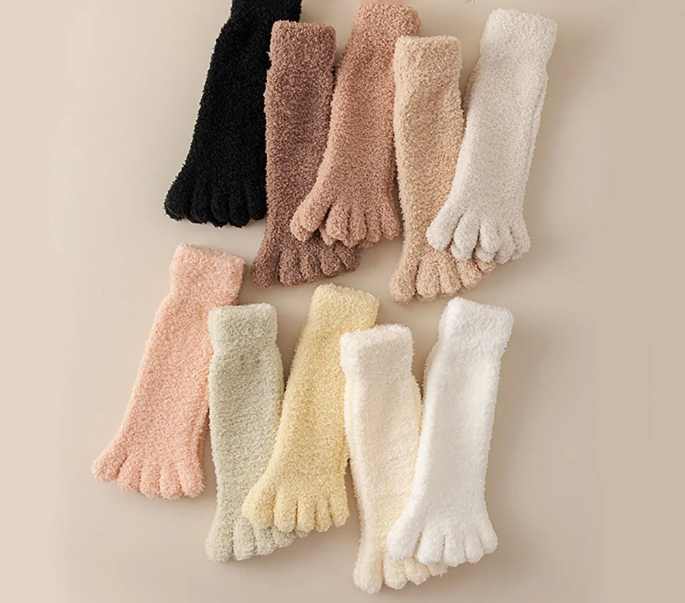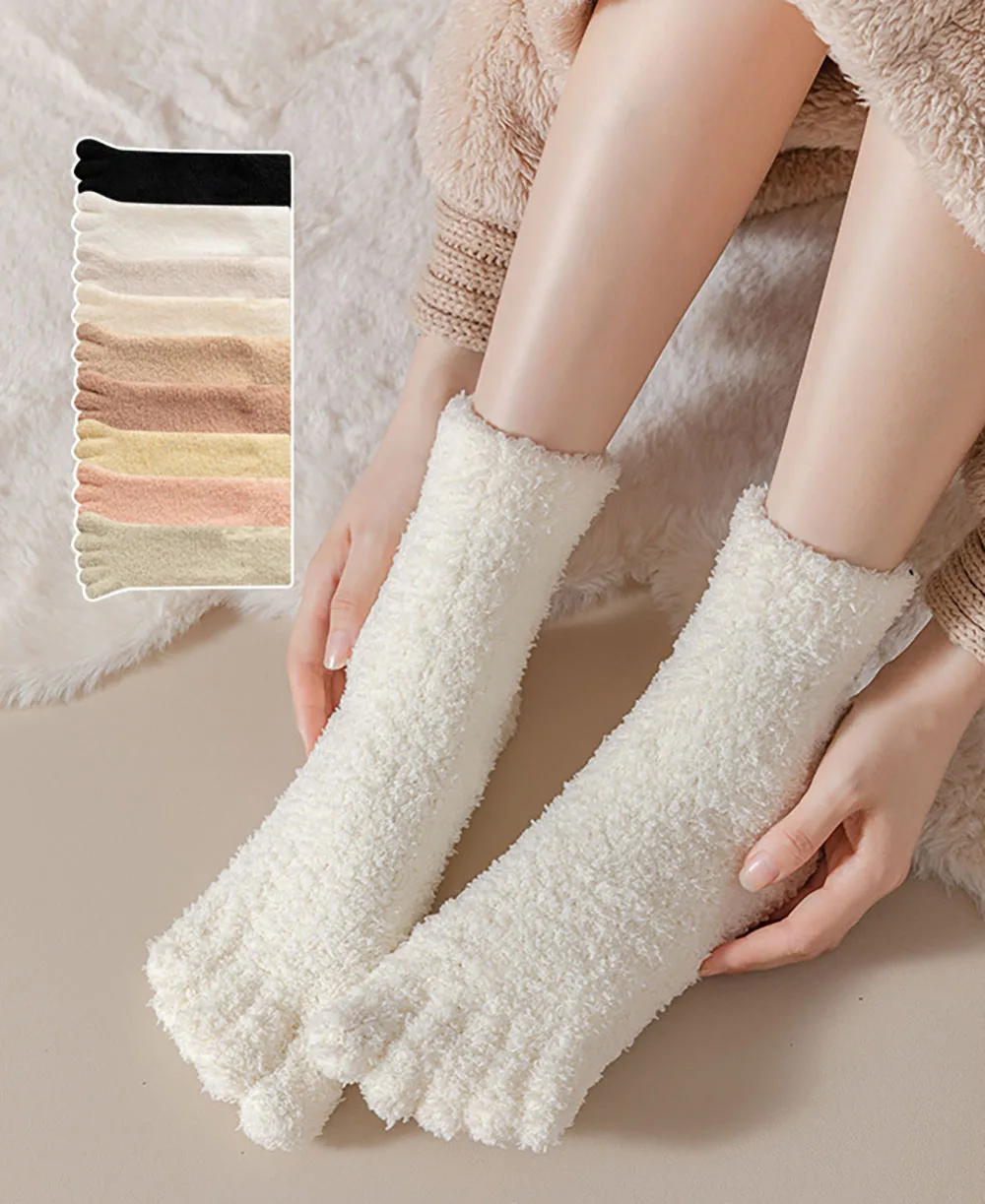 Autumn-Winter Soft Coral Fleece Five Finger Socks