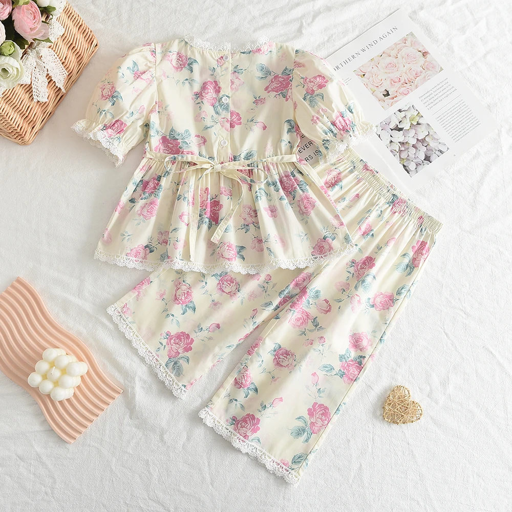 Melario Girls Sets Shirt Pants O-neck Short Sleeve Pullover Print Tops Elastic Waist Pants Suit Floral Summer Kids Girls Clothes