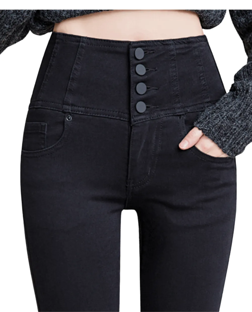 Button Fly Jeans High Waist Front for Women Tummy Control Stretch Denim Black Petite XS - 4XL Dress Pants With Pocket ouc433