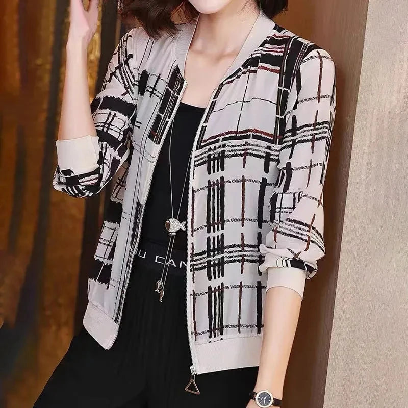 - spring thin zipper Cardigan: office lady long sleeve Chaqueta mujer
