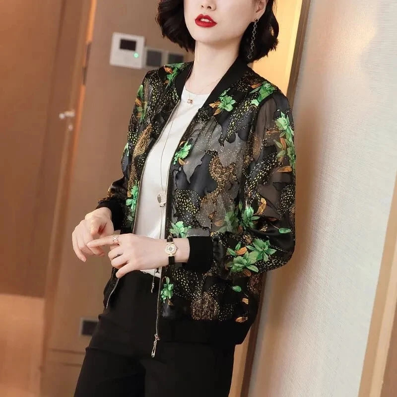 - summer print bomber jacket: Middle-aged and elderly baseball jacket