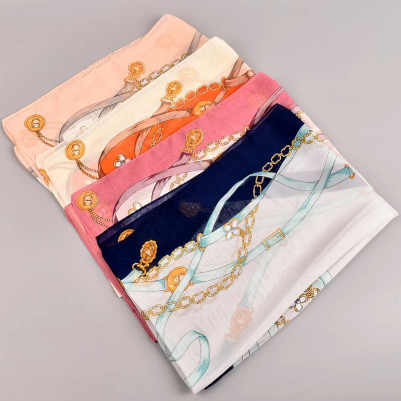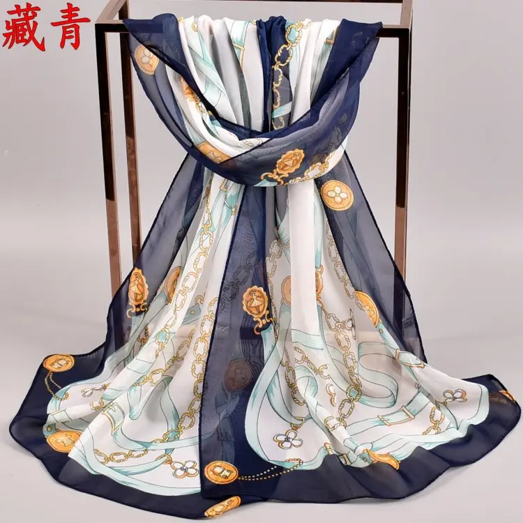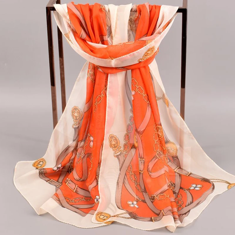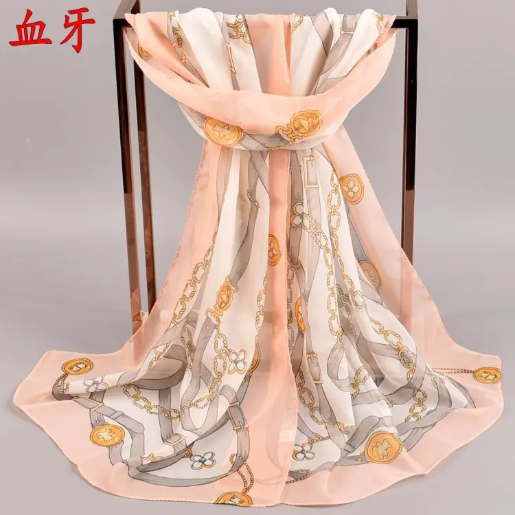 Summer New Dual Color Chain Chiffon Printed Long Scarves Wholesale Yiwu Women's Scarves Cross Border Source