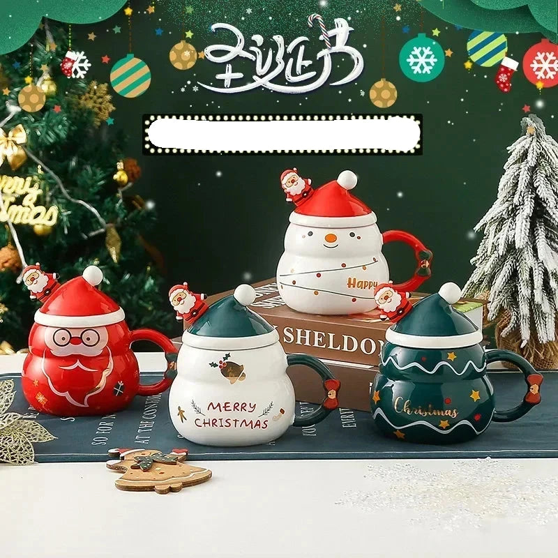 Christmas Ceramic Cup with Lid & Spoon