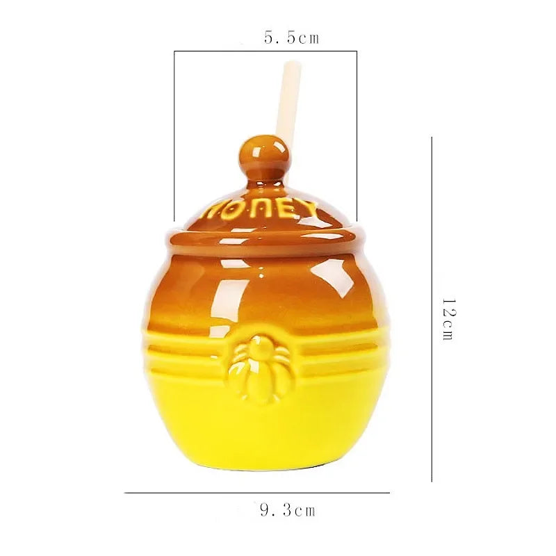 Creative Cartoon Pattern Wooden Stirring Stick Vintage Ceramic Honey Jars