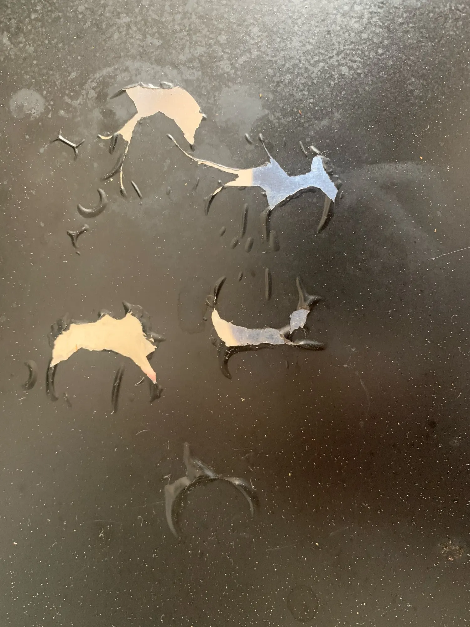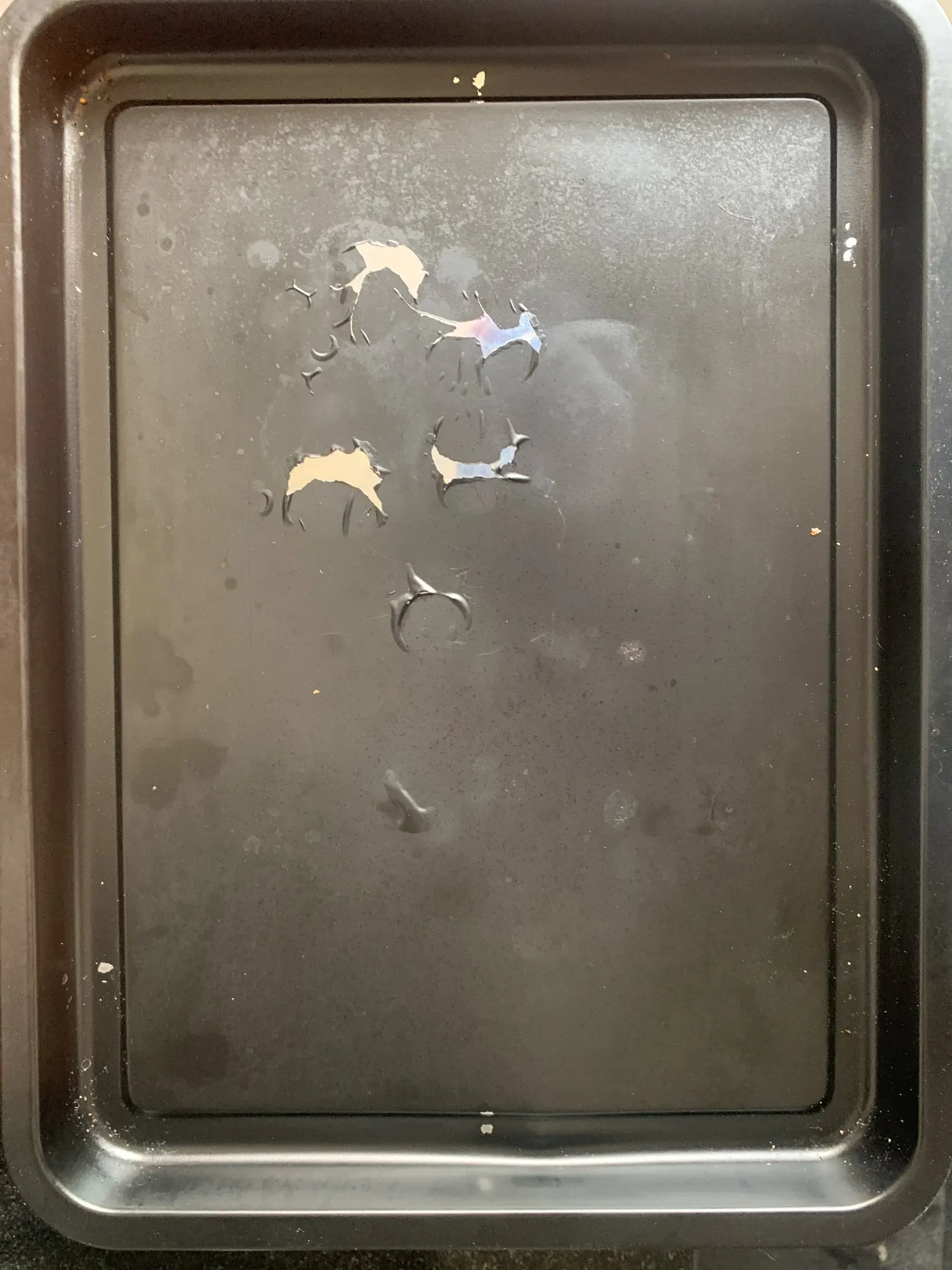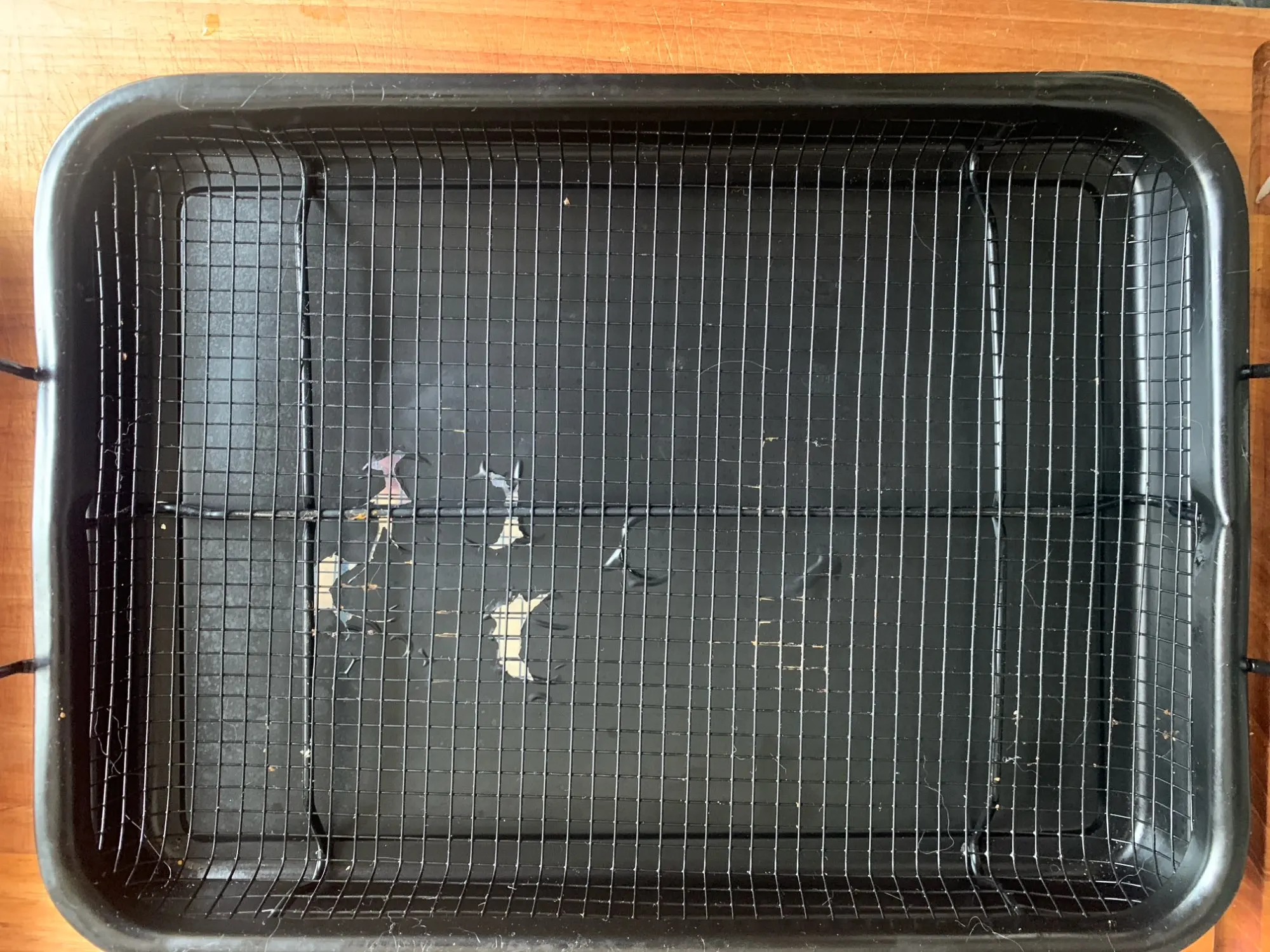 In the first use (grilling a piece of meat), I put water in the tray to prevent smoke; the result was that the water and the grease from the meat dissolved the paint that I thought was an anti-stick coating.