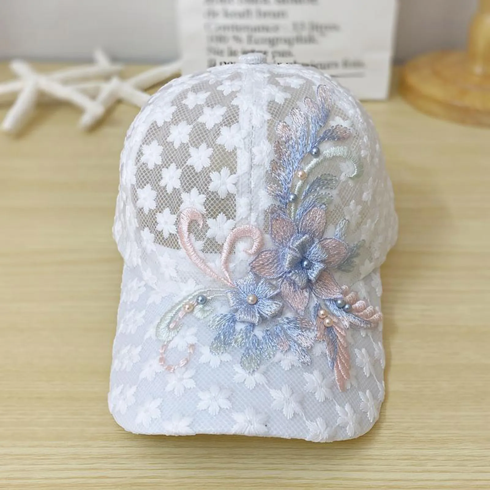 Embroidered Floral Mesh SunScreen Baseball Cap