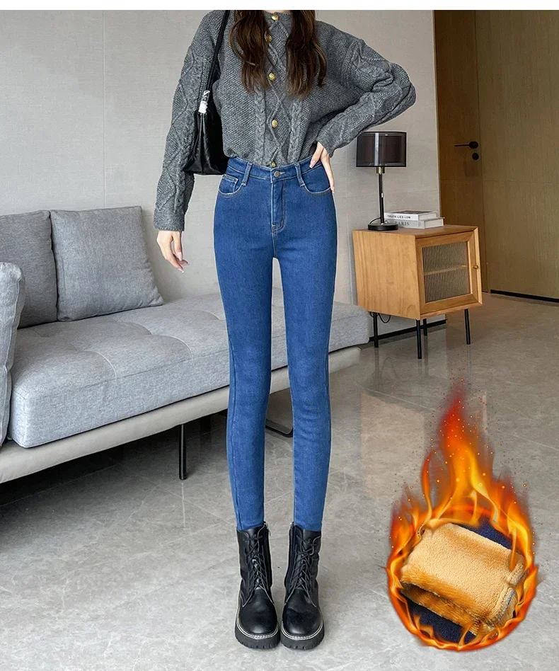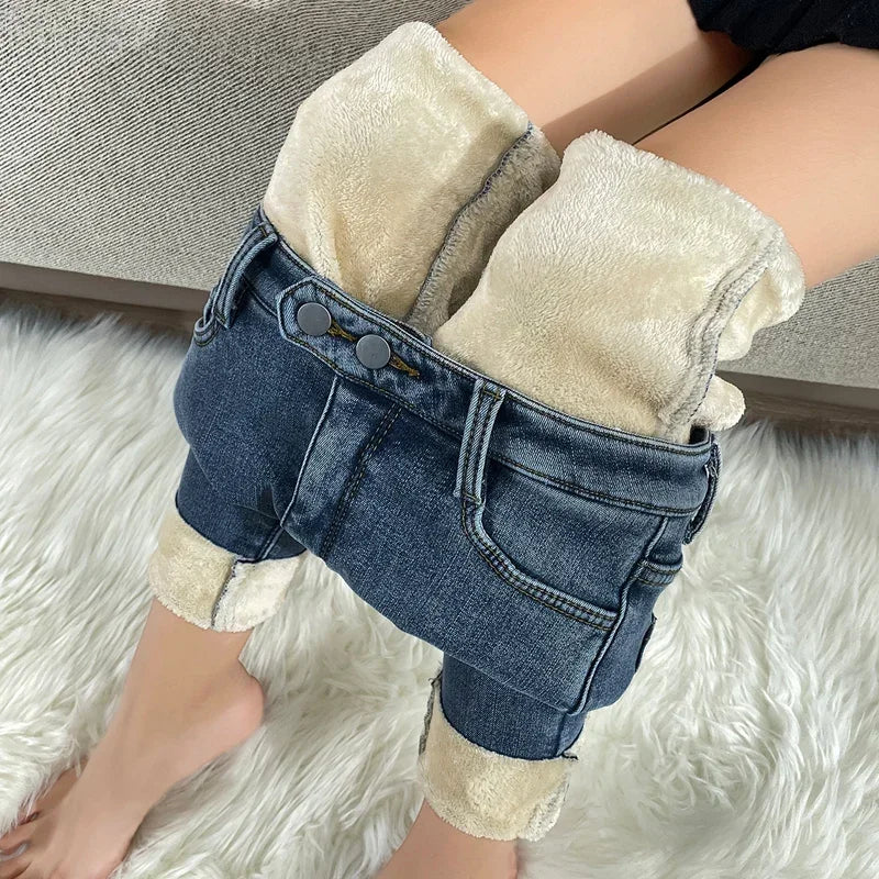 Fleece Velvet Elastic Women's Skinny Jeans