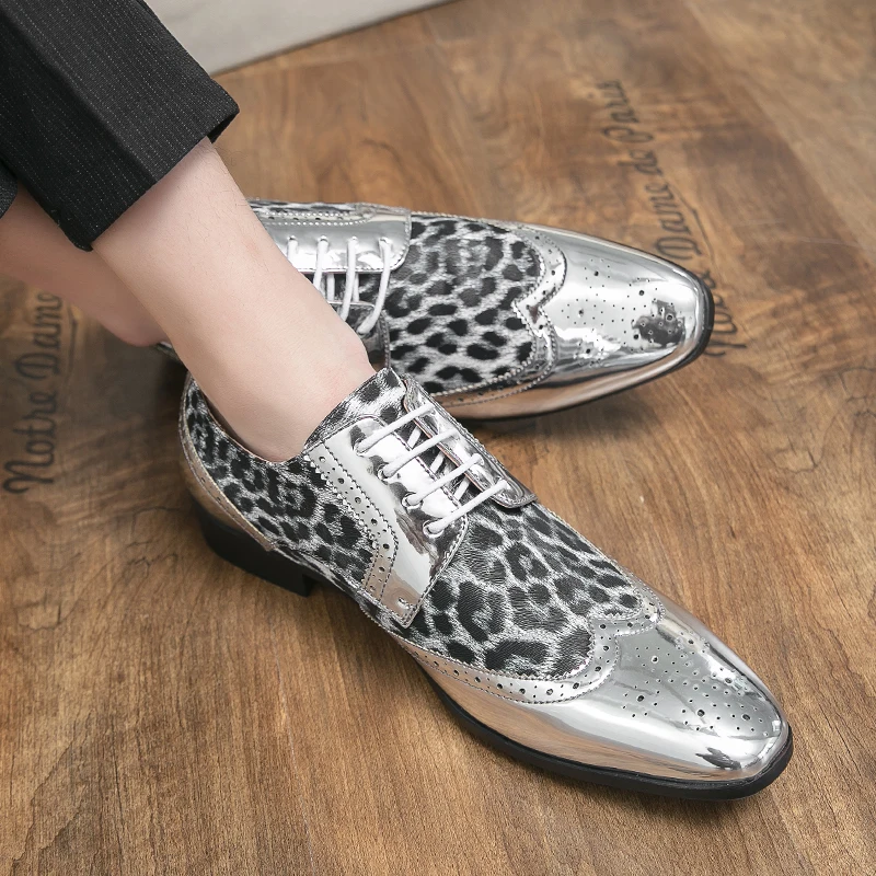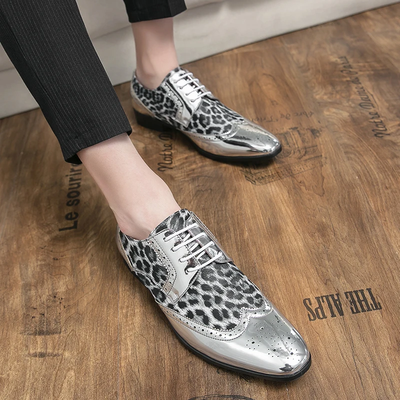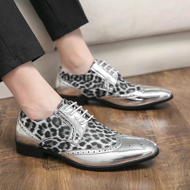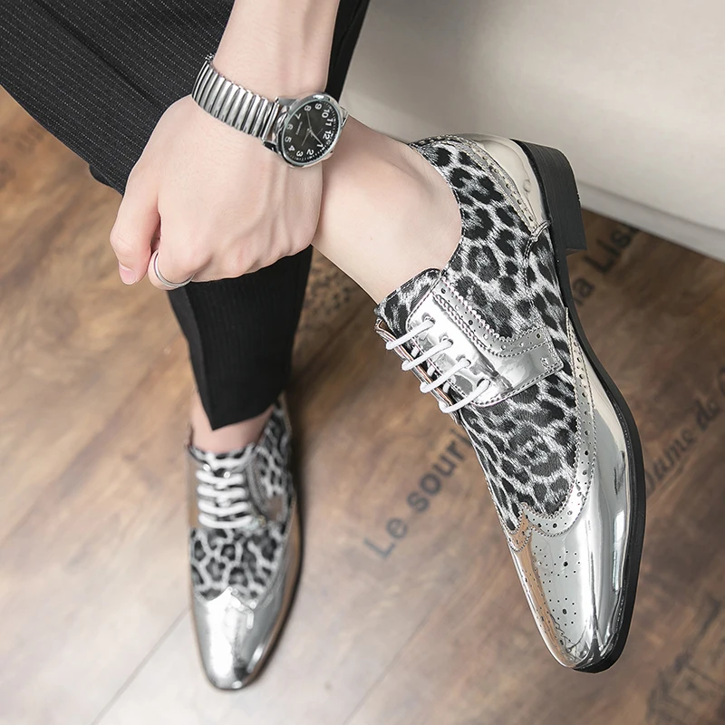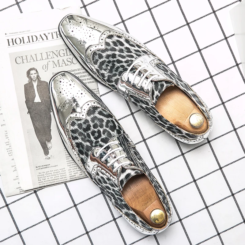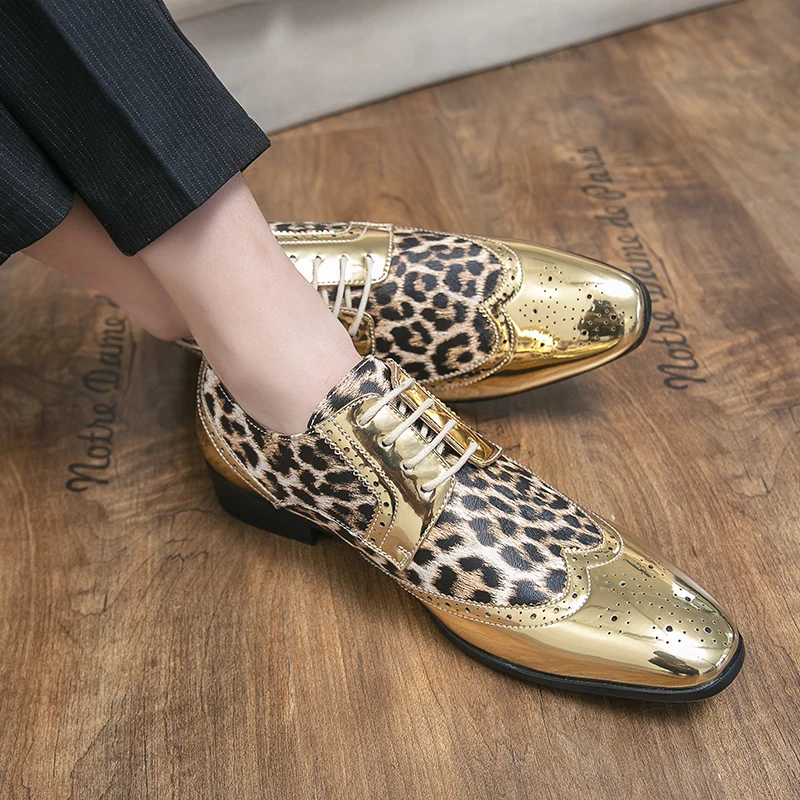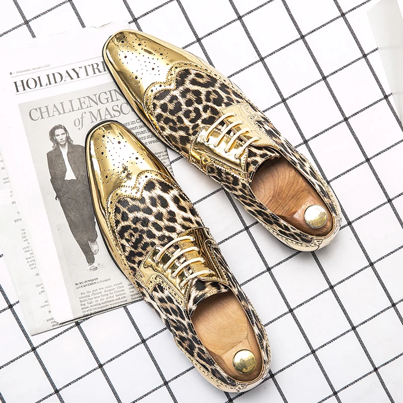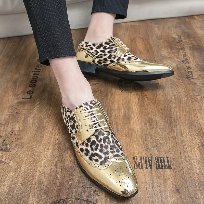 Gold Leopard Leather Brogue Shoes