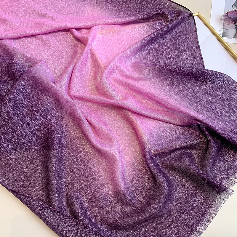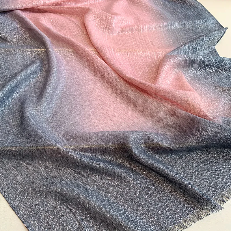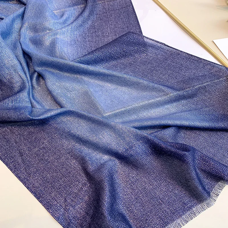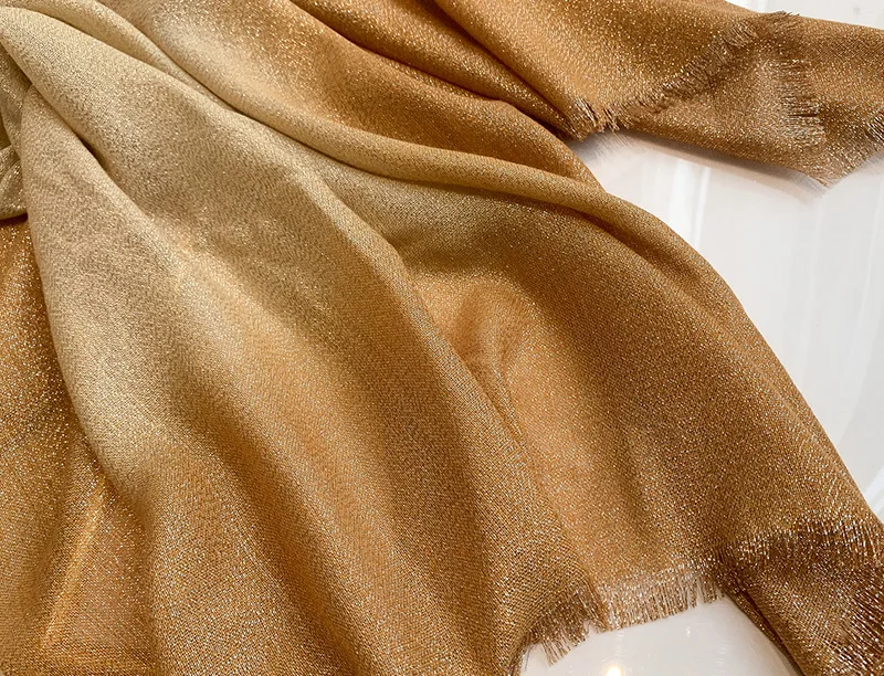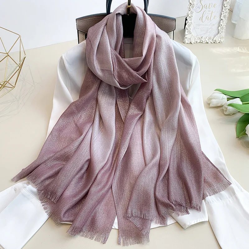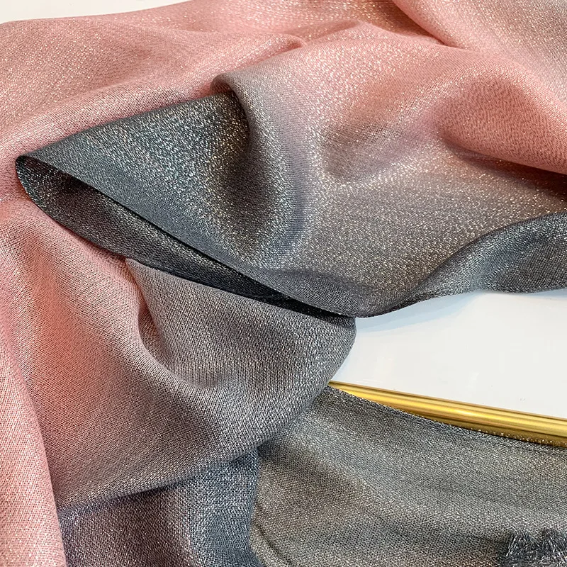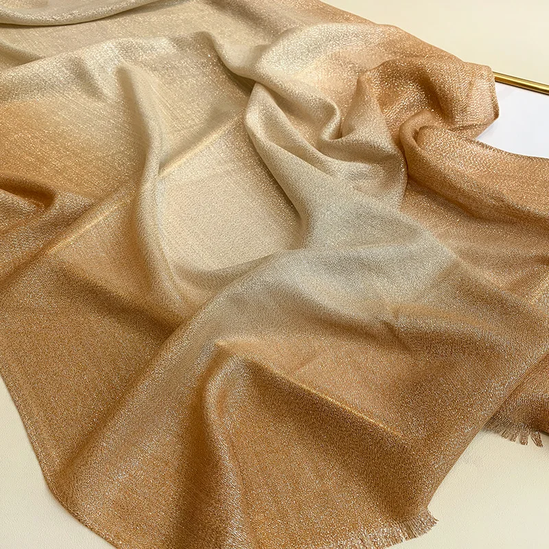 New Fashion Plain Ombre Lurex Glitter Viscose Scarf Shawl Lady High Quality Gradient Pashmina Fringe Stole Bufandas Muslim Hijab