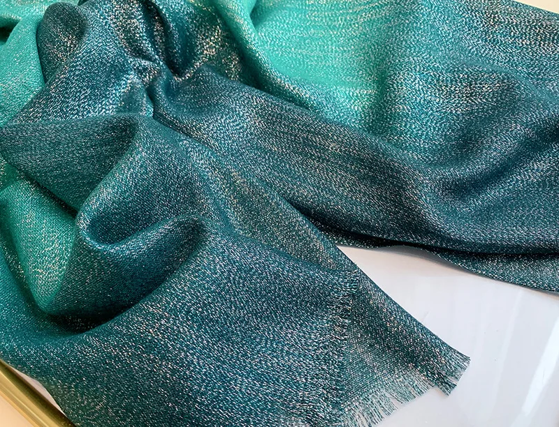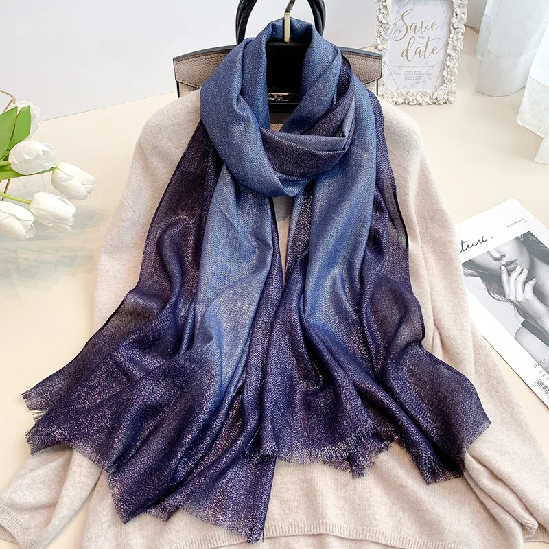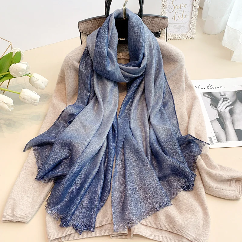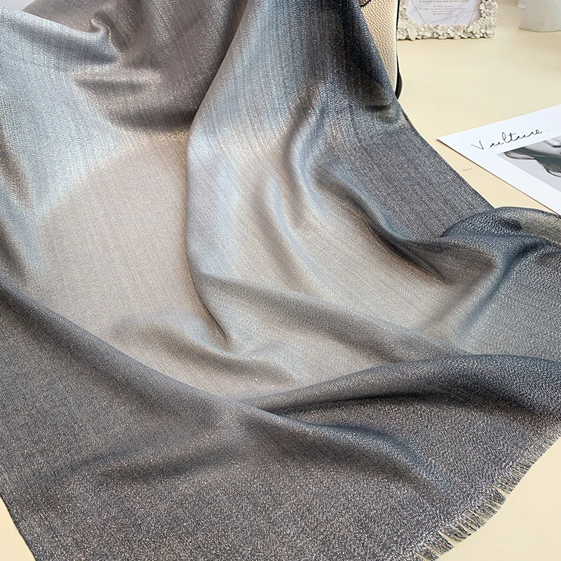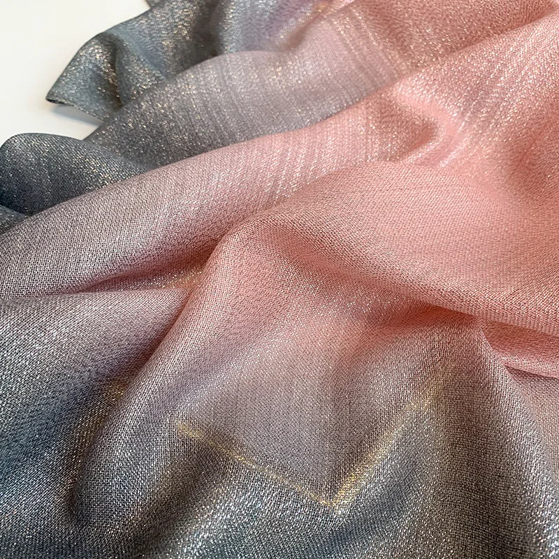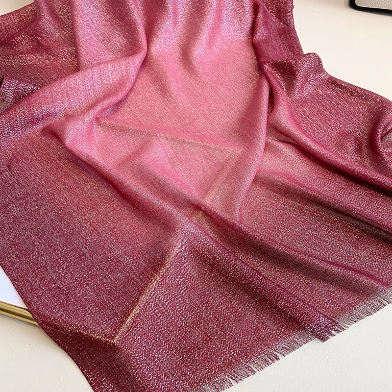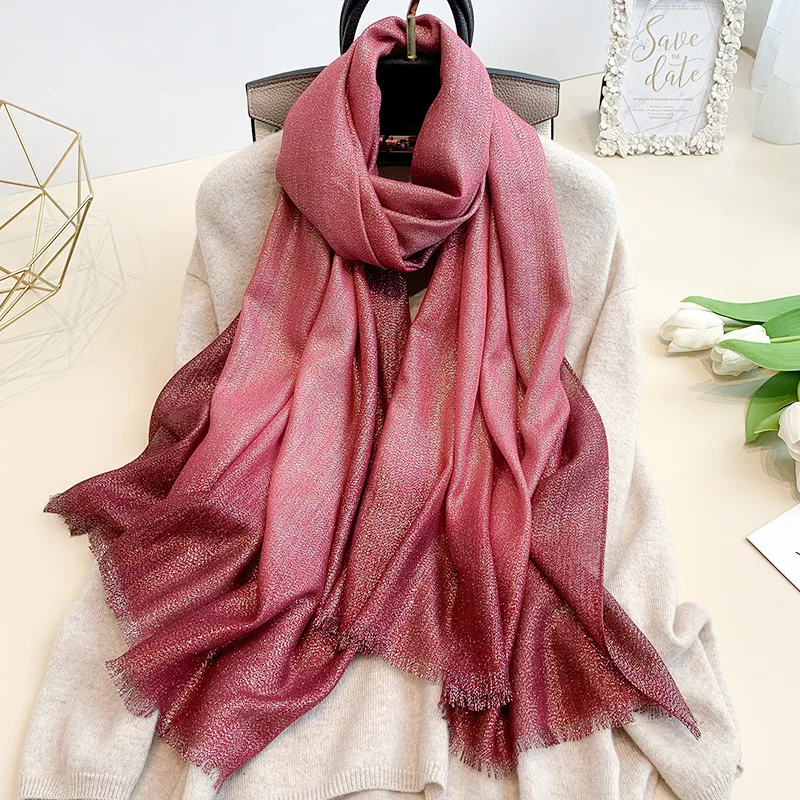 New Fashion Plain Ombre Lurex Glitter Viscose Scarf Shawl Lady High Quality Gradient Pashmina Fringe Stole Bufandas Muslim Hijab