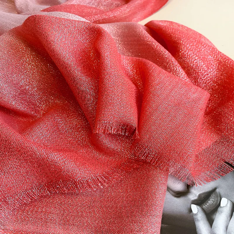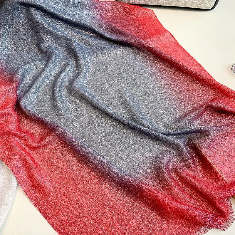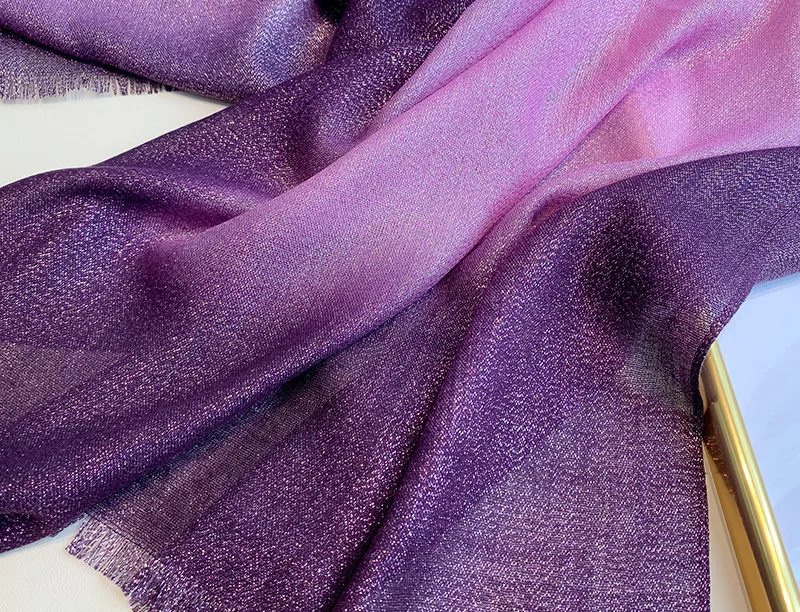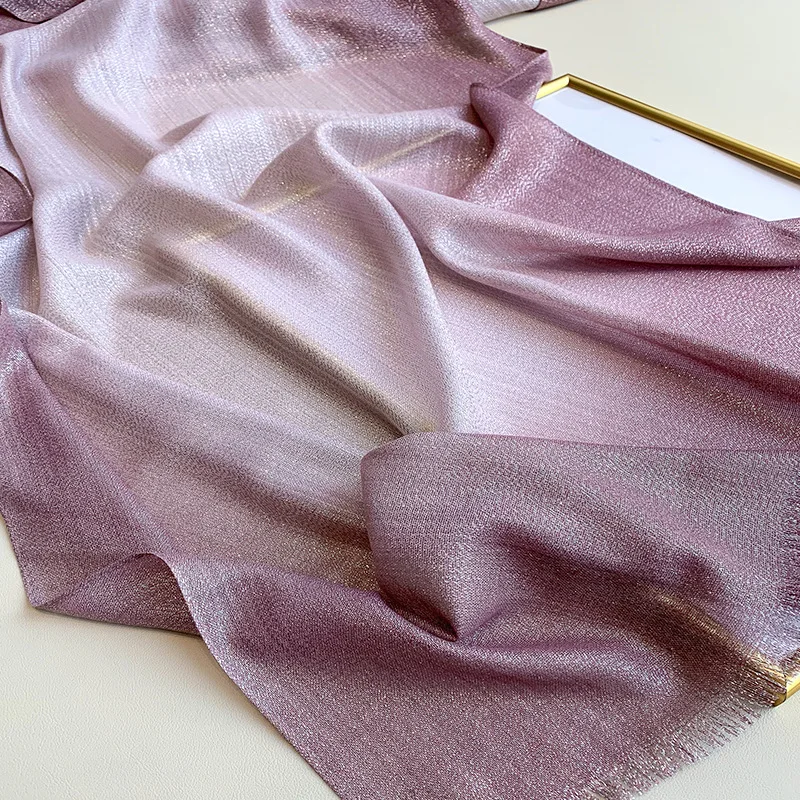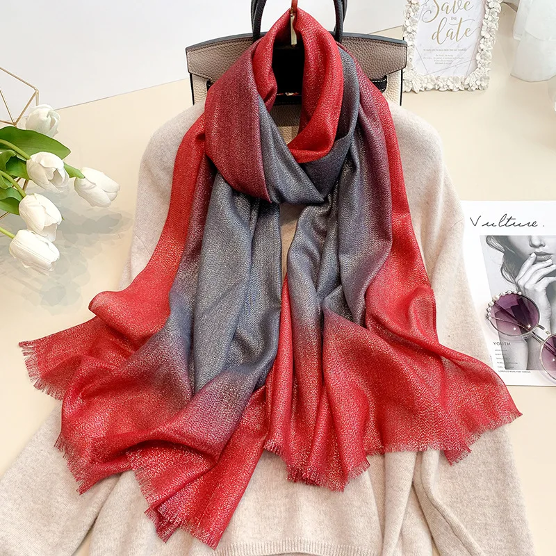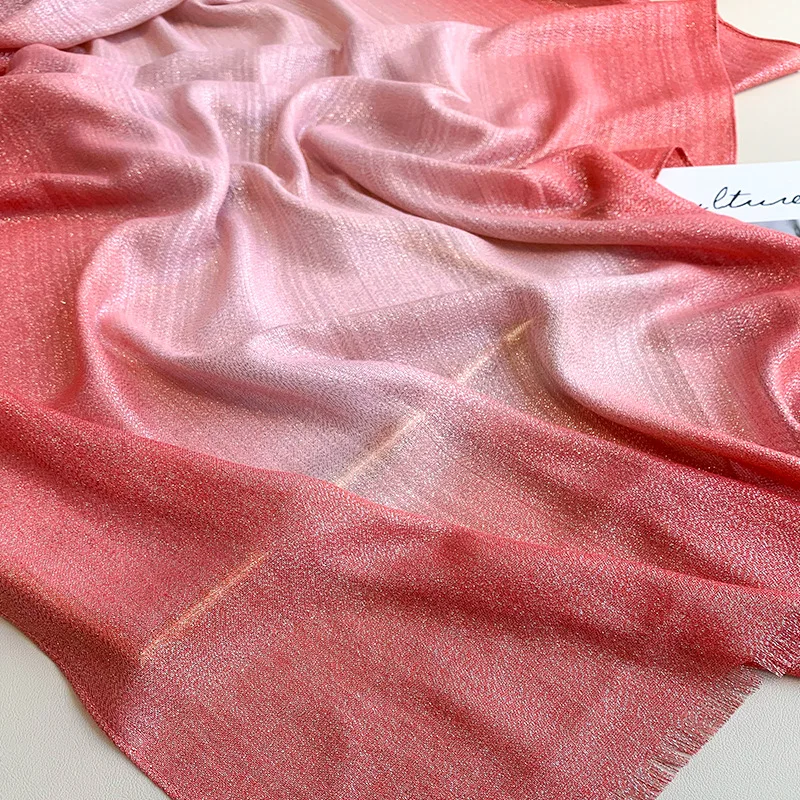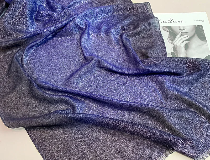 New Fashion Plain Ombre Lurex Glitter Viscose Scarf Shawl Lady High Quality Gradient Pashmina Fringe Stole Bufandas Muslim Hijab