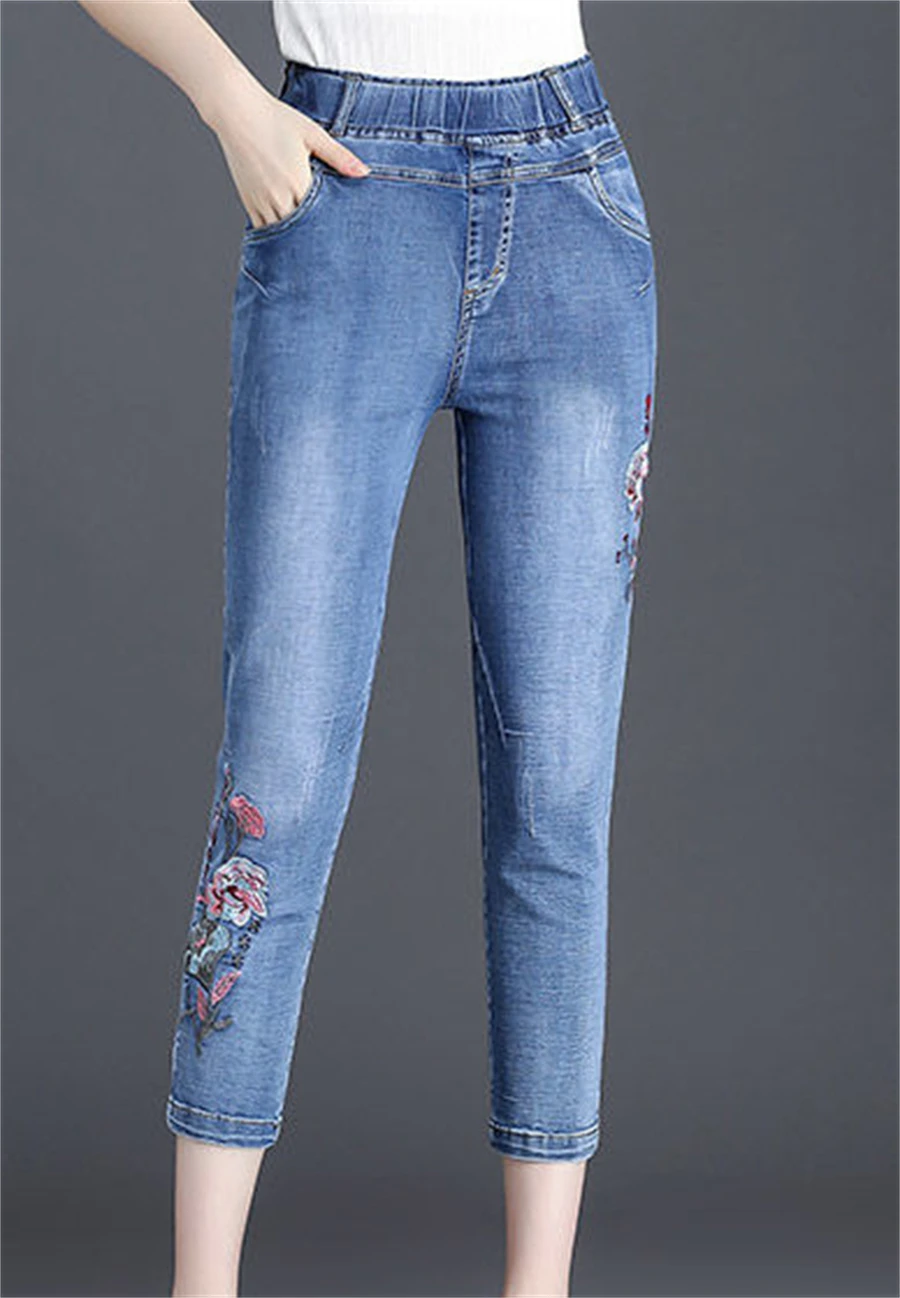 - Calf-Length pantalones de mujer: Elastic Waist spodnie damskie