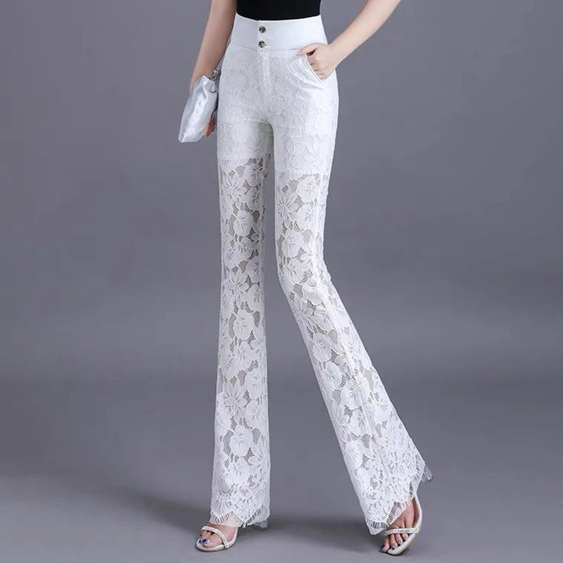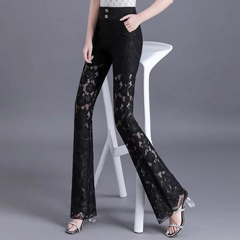 High-Waist Lace Patchwork Flare Pants