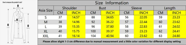 | Size | Shoulder | Bust | Sleeve Length | Length |