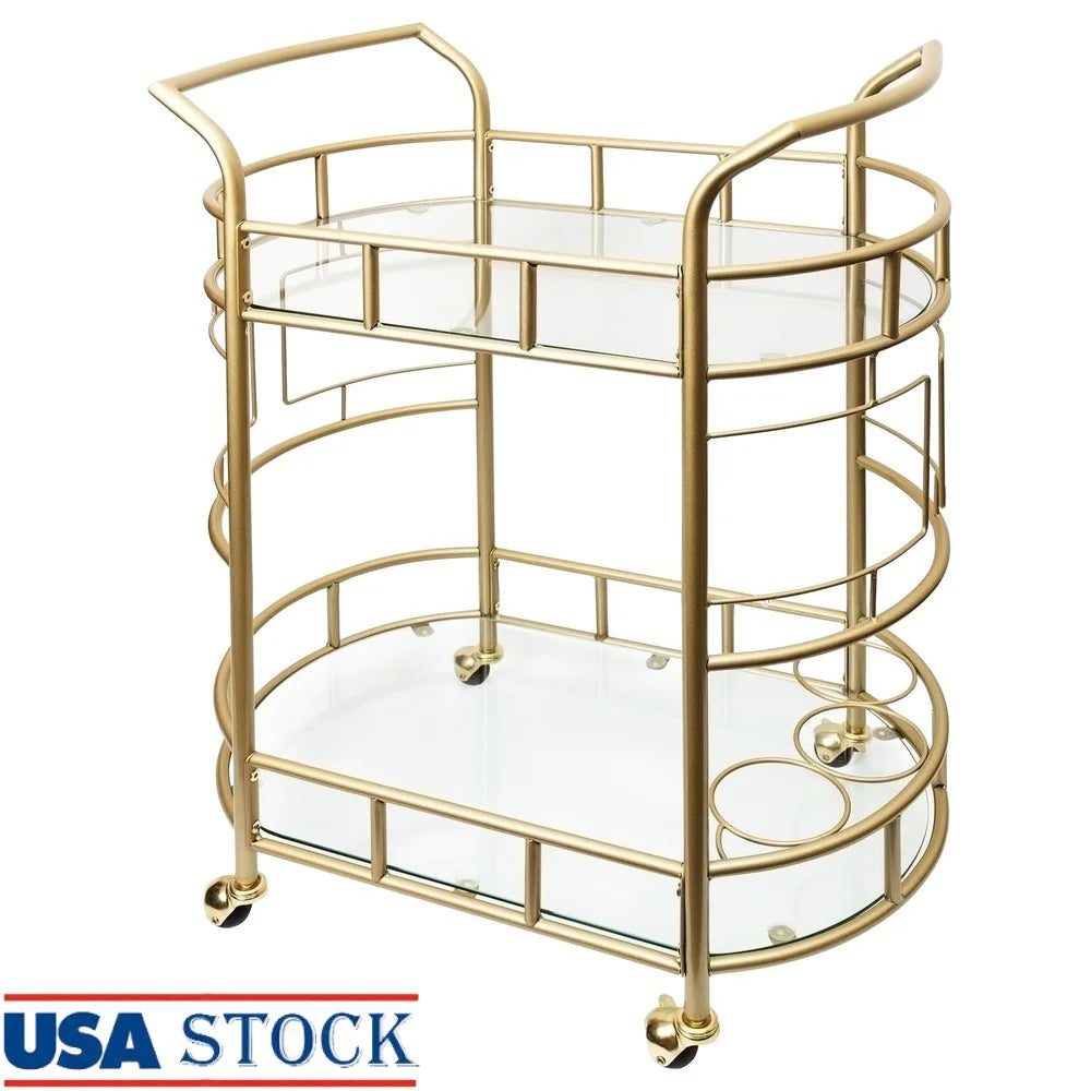 Bring elegance and functionality into your home with this stylish Gold Bar Cart. Featuring two spacious tempered glass shelves, this cart provides ample room for serving drinks or displaying glassware. Its sleek golden frame with mirror-finished shelves adds a touch of glamour, making it a stunning piece of furniture for entertaining guests.