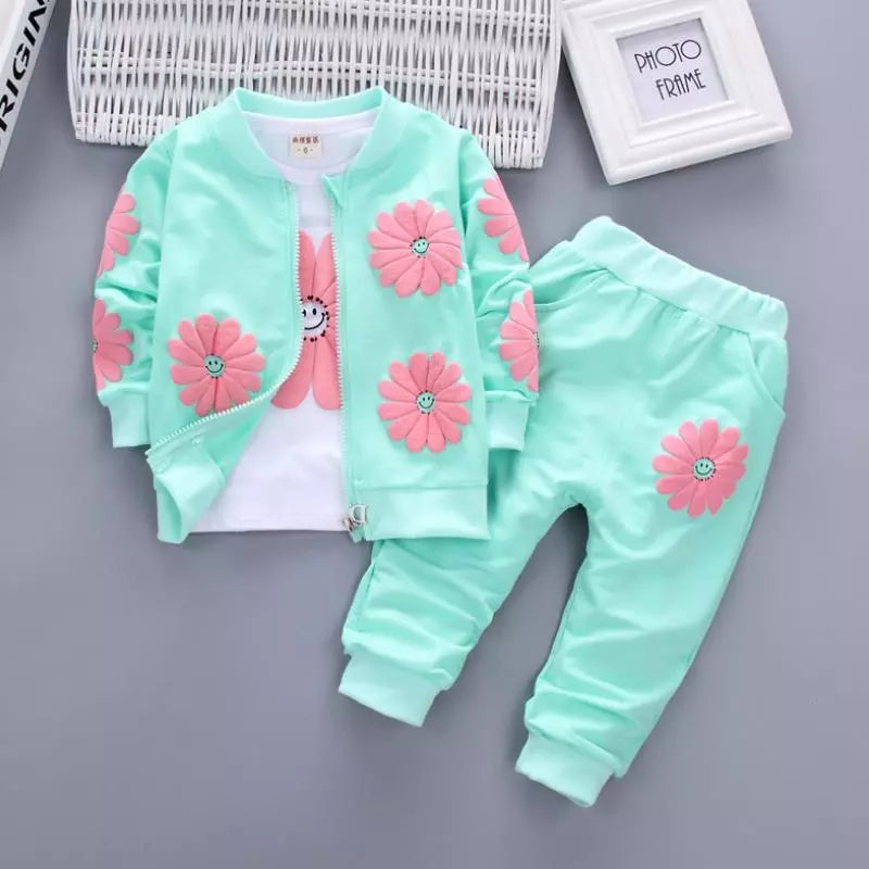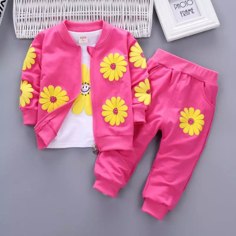 New Girl Pure Cotton Printing Three-piece Child Suit