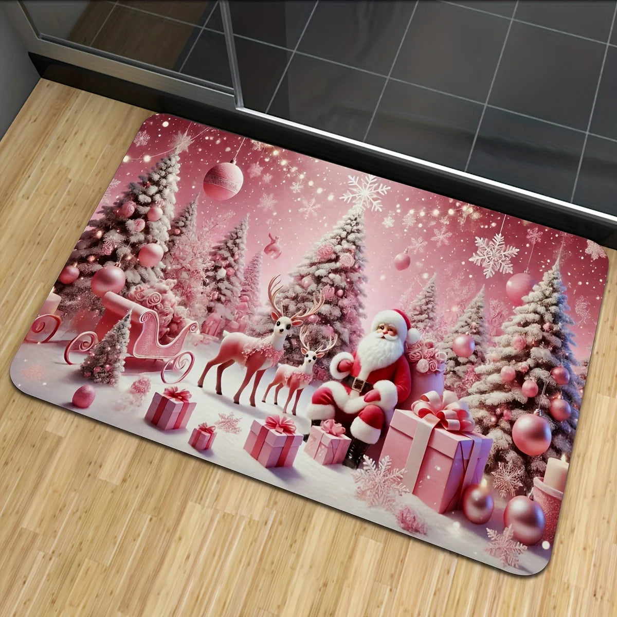 Pink Christmas World Non-Slip Floor Mat