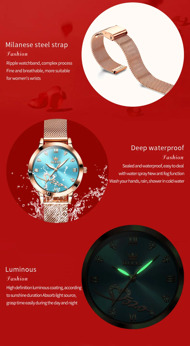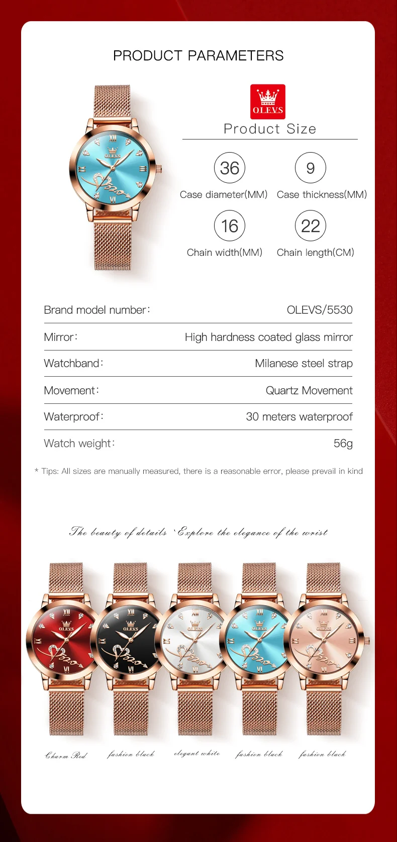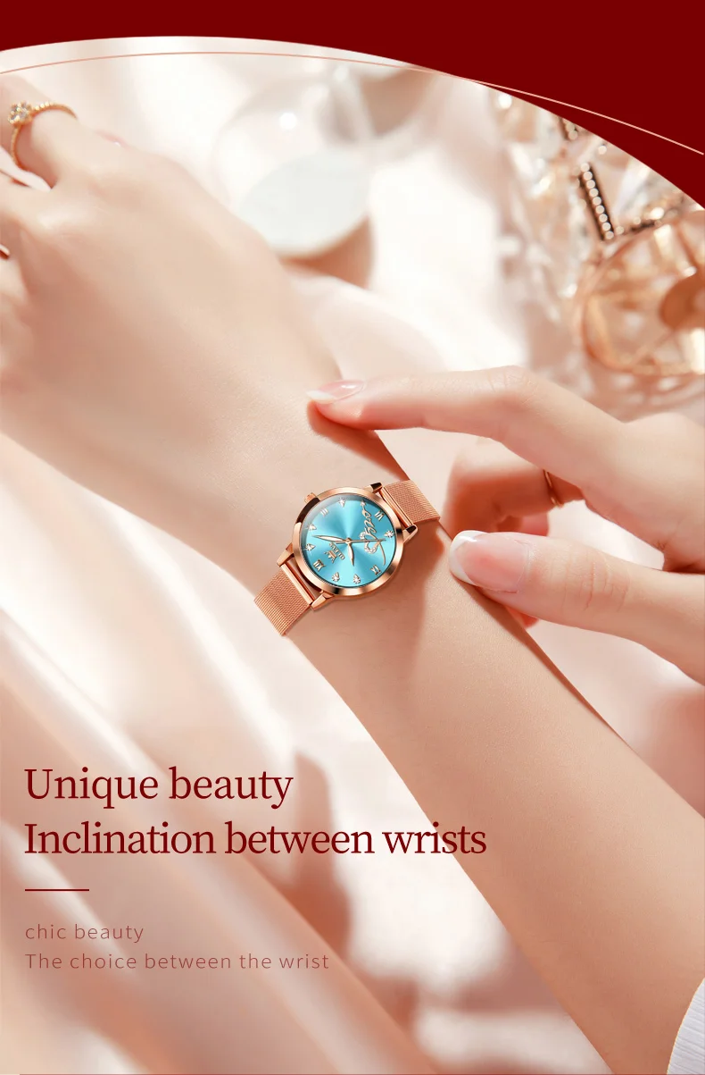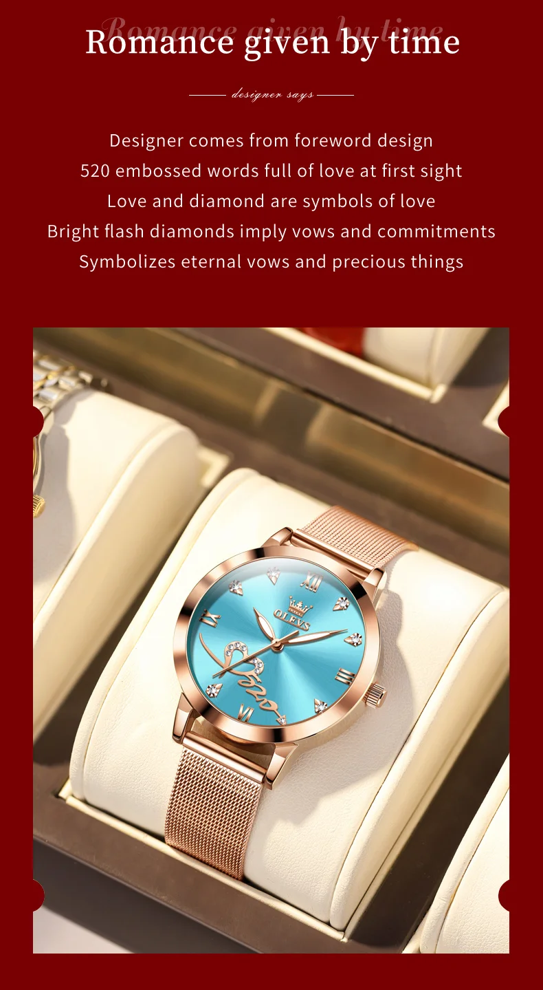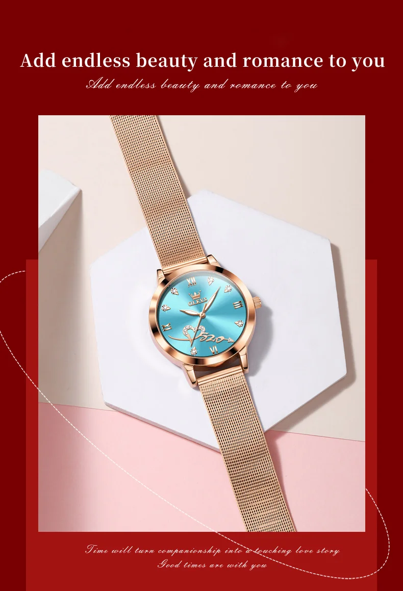 Stainless steel Mesh Belt Tiffany Blue love Ladies' Watches