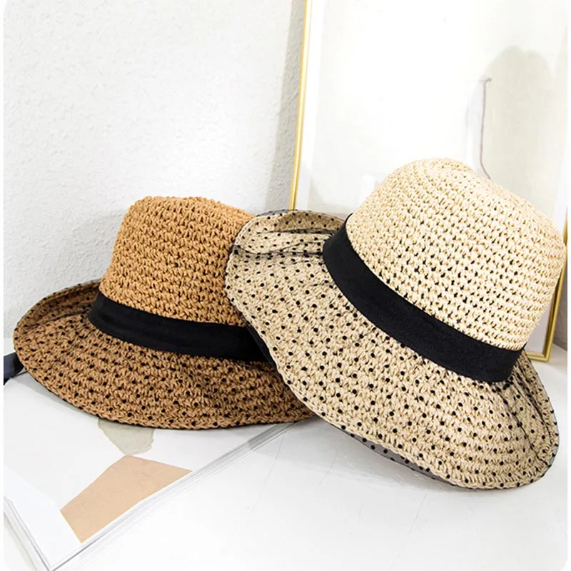 PULSERA DE NÚMEROS ROMANOS Sun hat for women Beach Hats Women Summer new Dot lace stitched paper grass sombrero breathable Sun Protection fisherman hat |