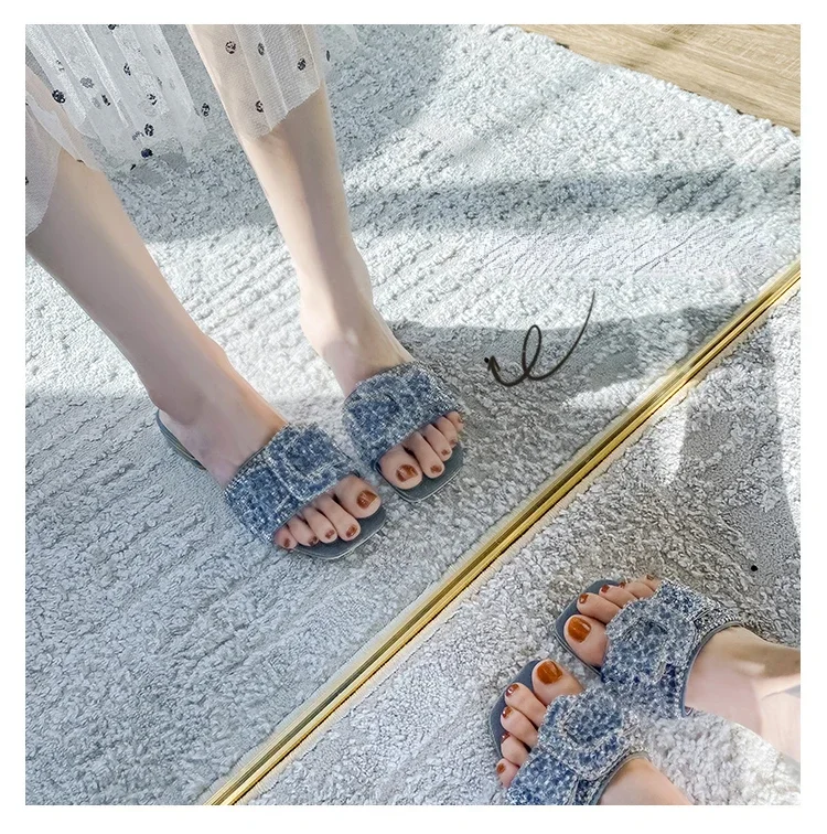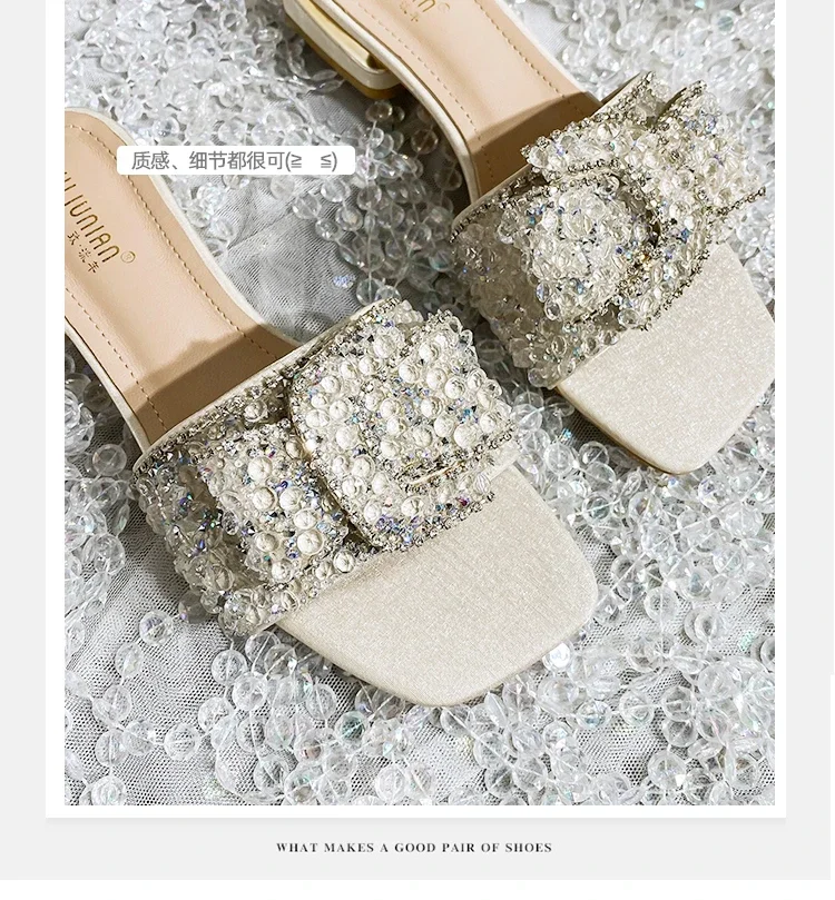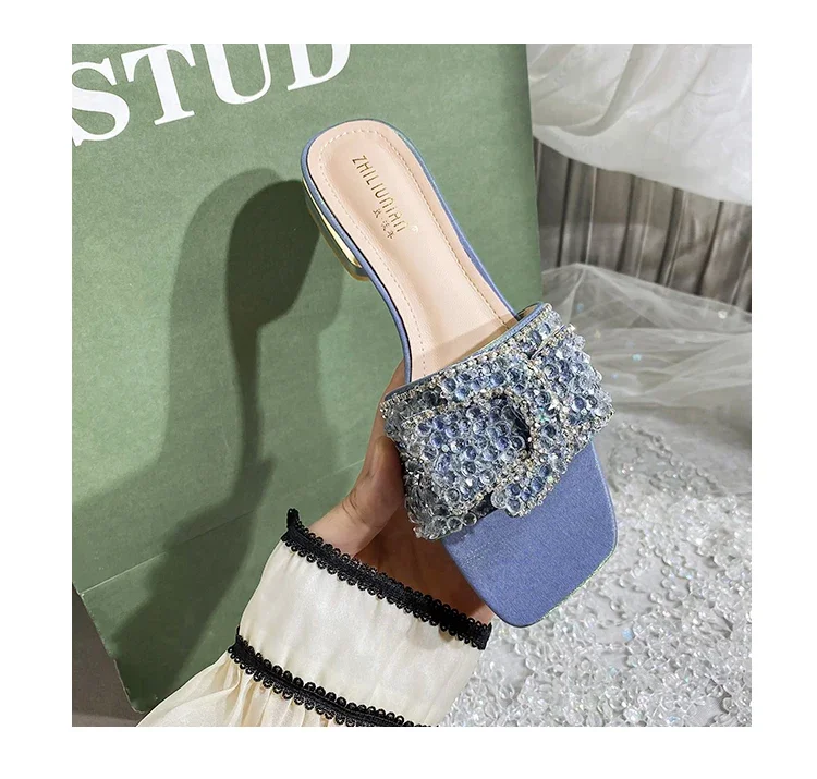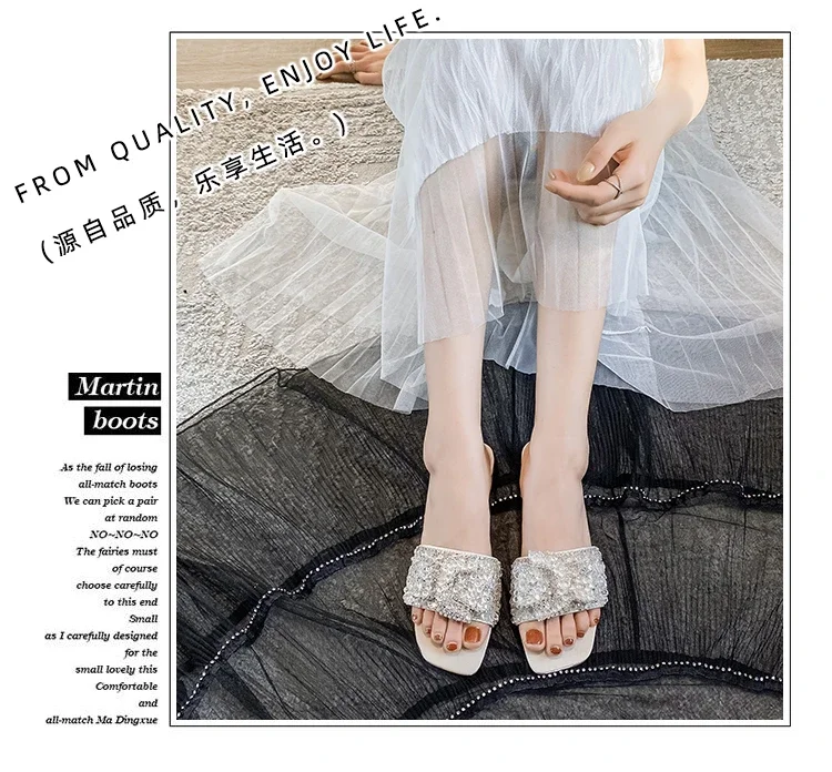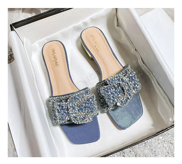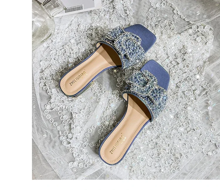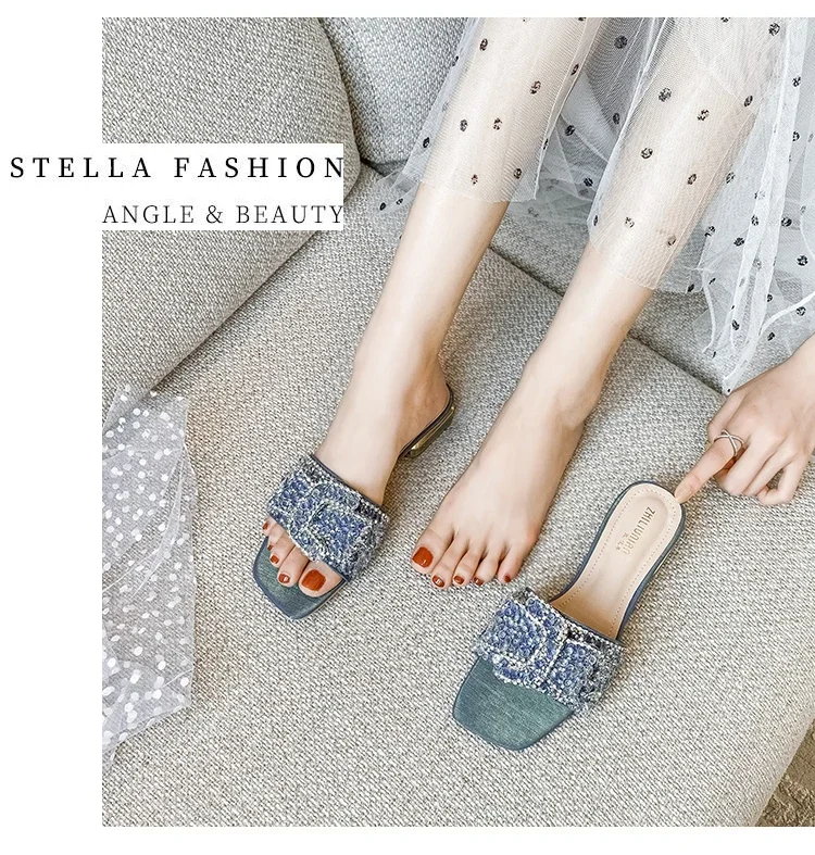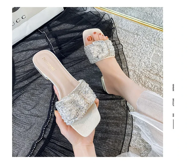 Summer Rhinestone Flat Heel Peep Toe Sandals