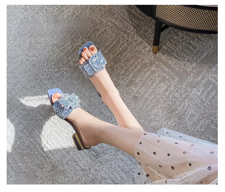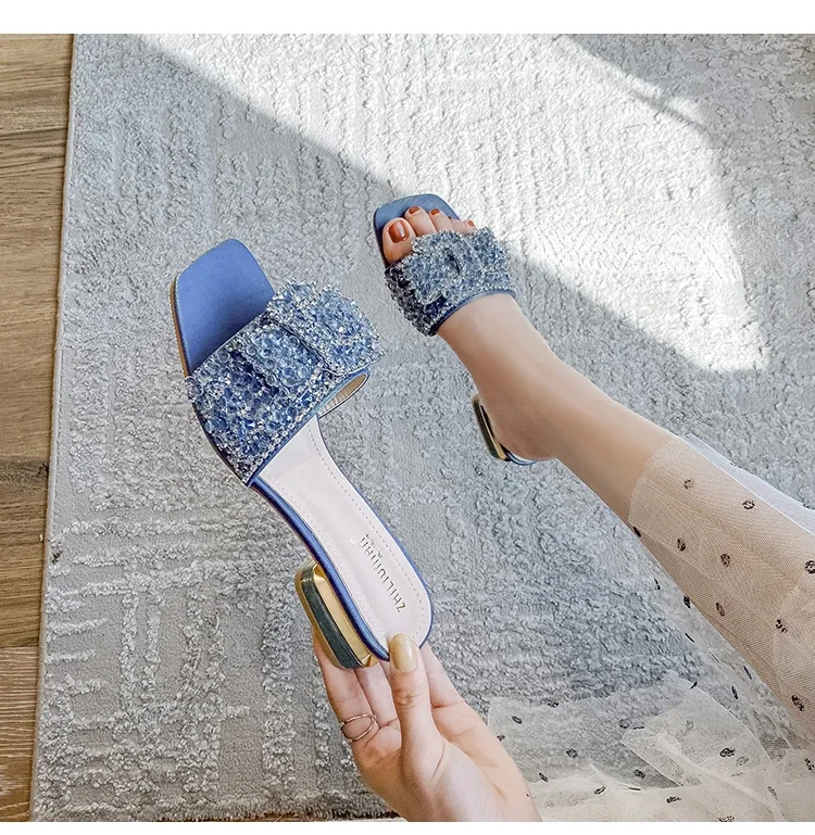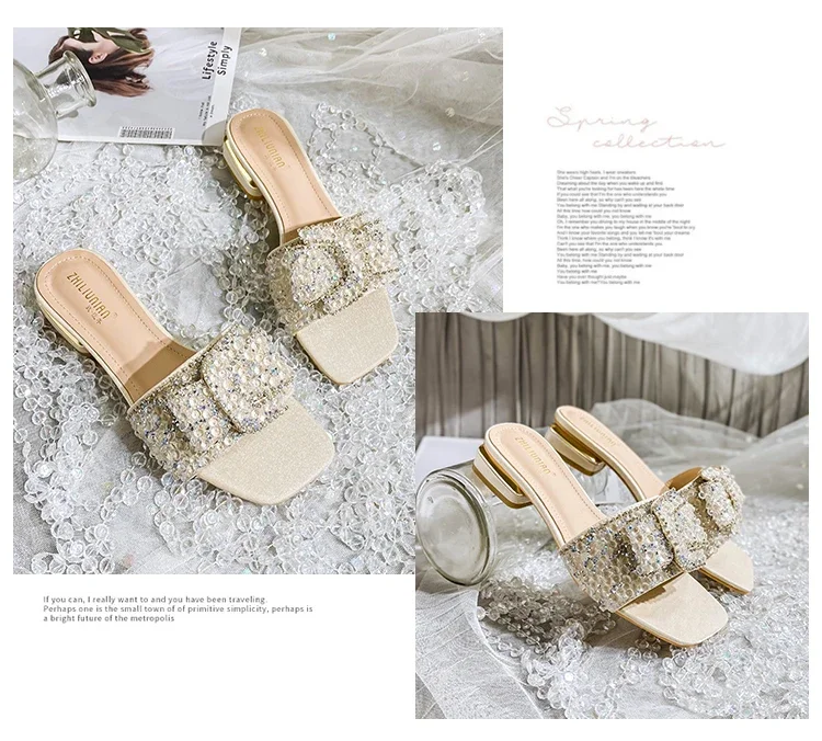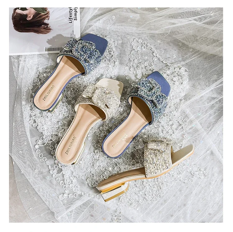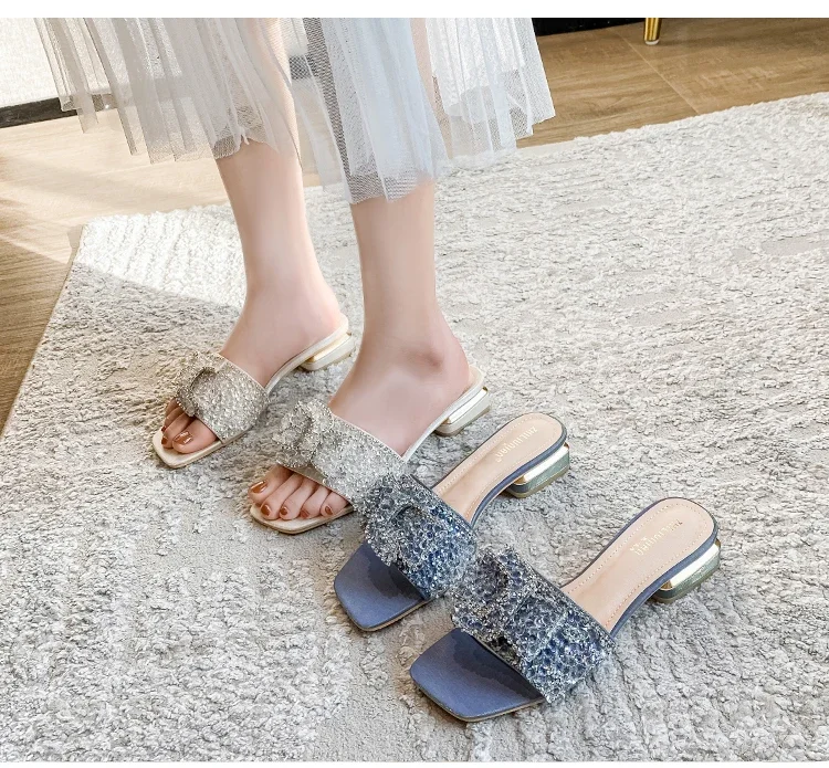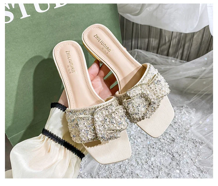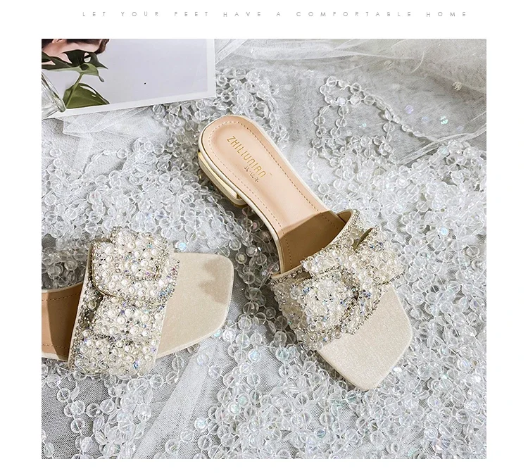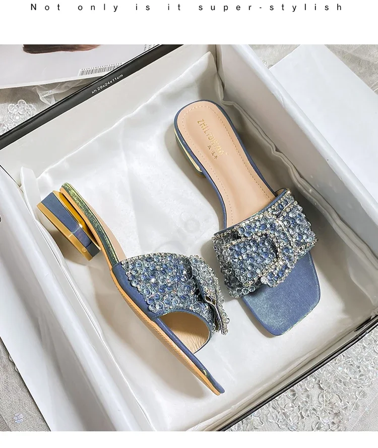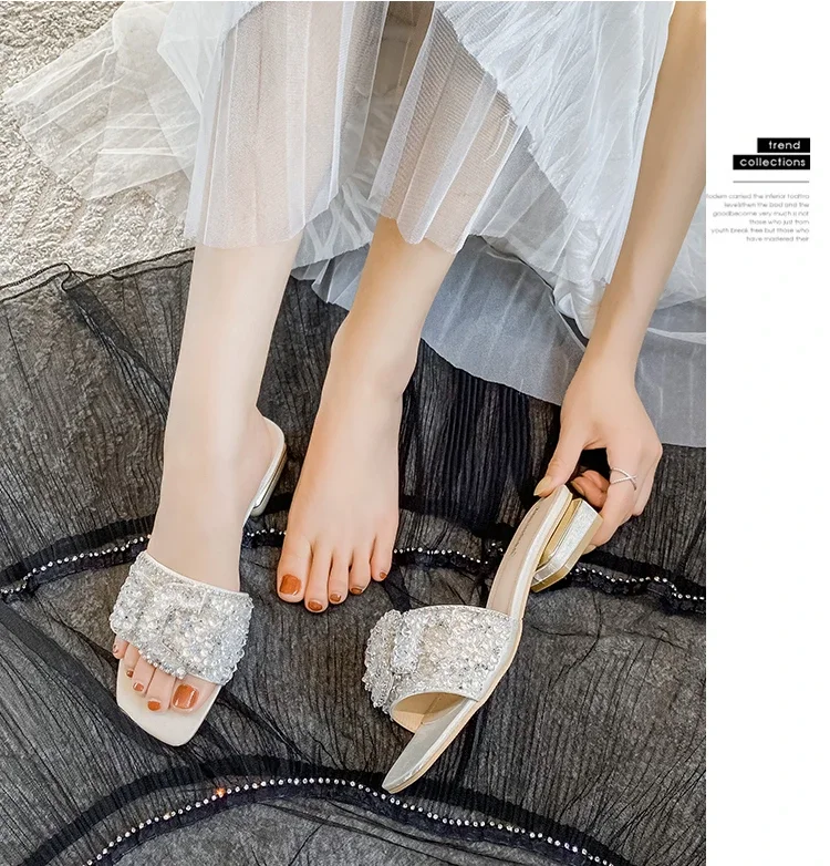 Summer Rhinestone Flat Heel Peep Toe Sandals