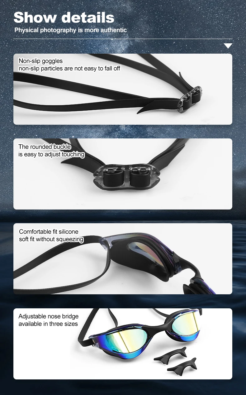 4. Dazzling Colors: these sports swimming goggles have a variety of colors; Adopting coating process, which is not easy to fade, and can meet your different matching and replacement needs; You can also choose different colors according to different moods