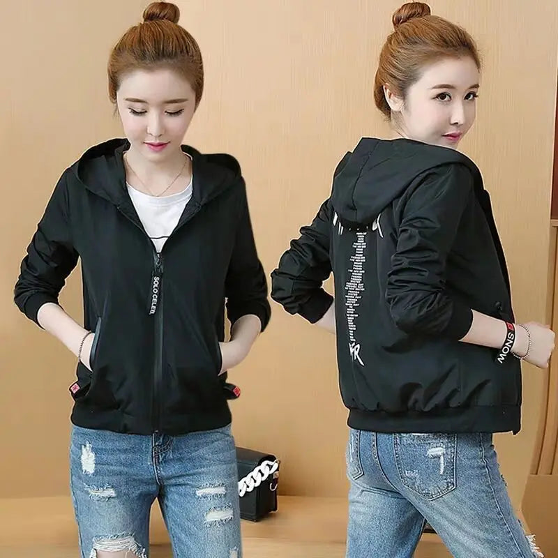 Women's Casual Hooded Windbreaker Jacket