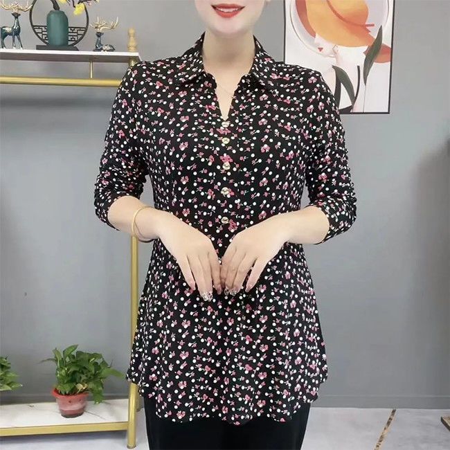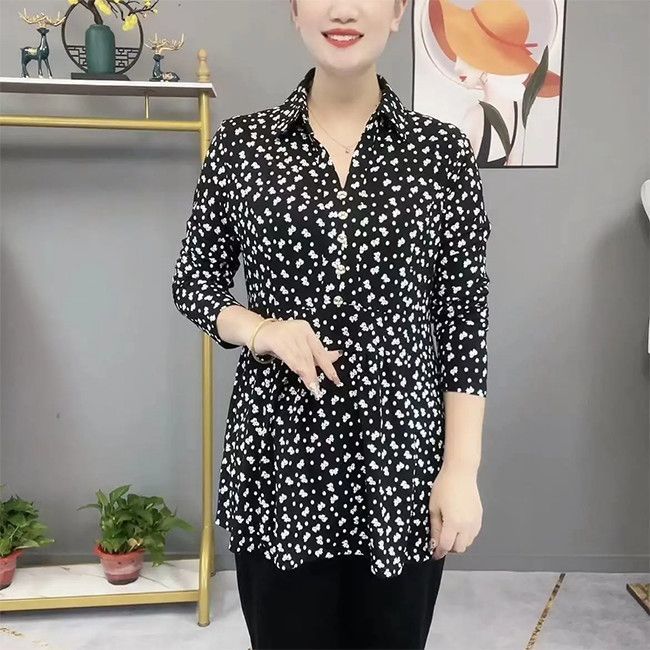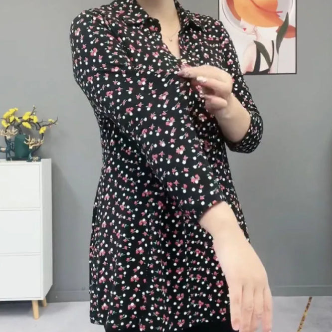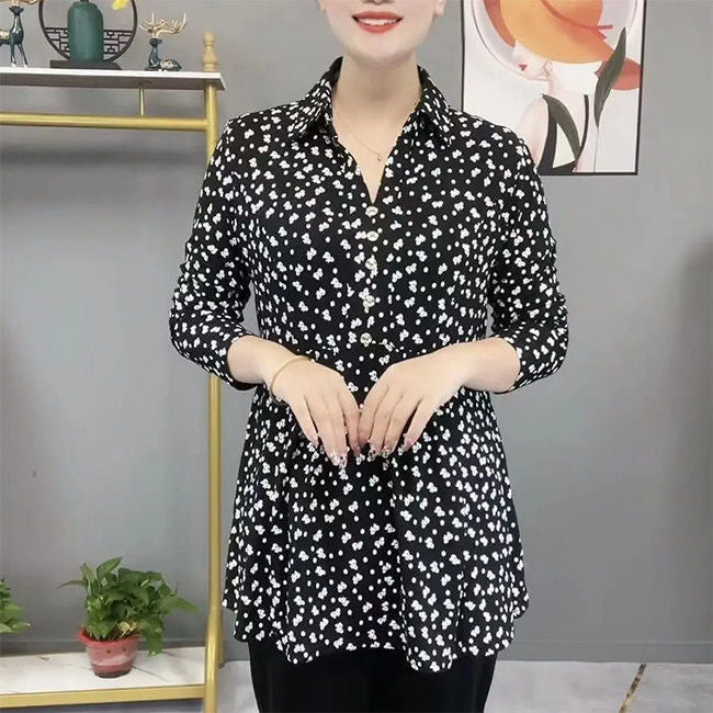 Women's Dot Print Puff Sleeve Polo Neck Summer Blouses