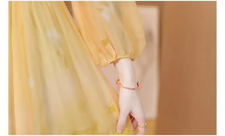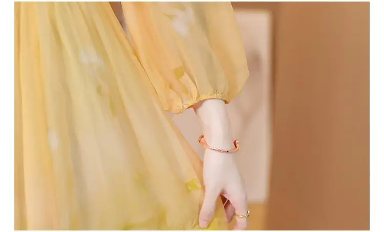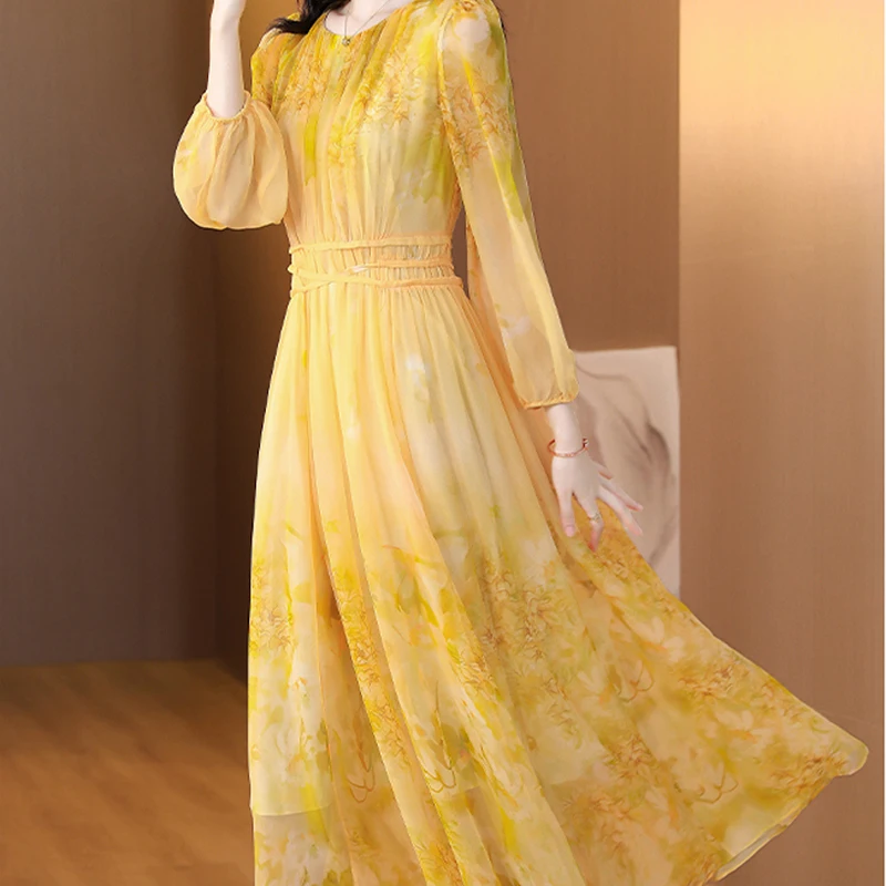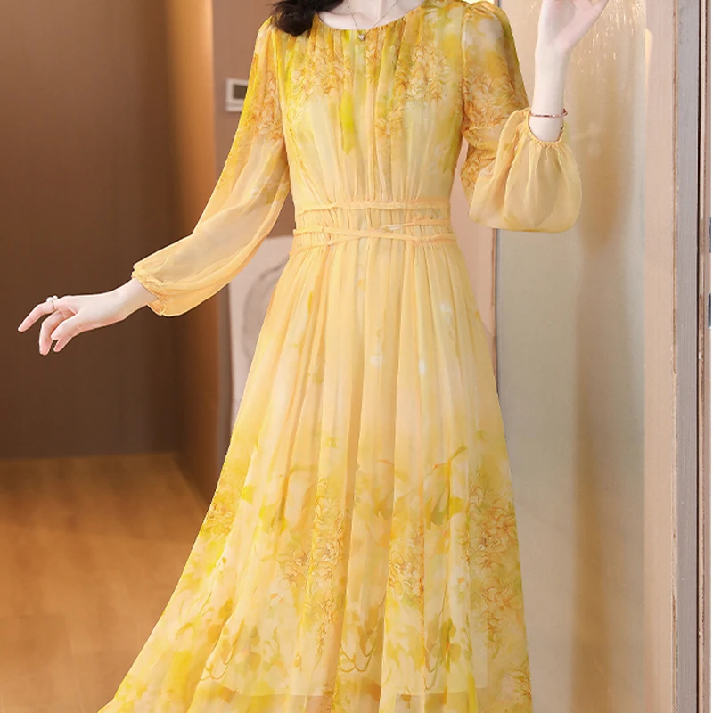 Women's Floral Silk Long Sleeve Bodycon Maxi Prom Dress