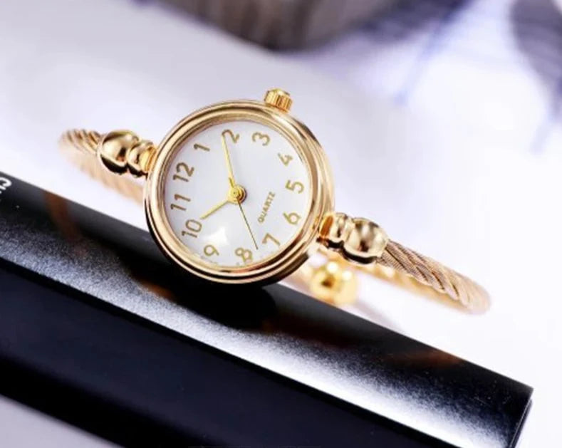 Women Small Gold Bangle Bracelet Watch: Retro Ladies Quartz Wristwatches