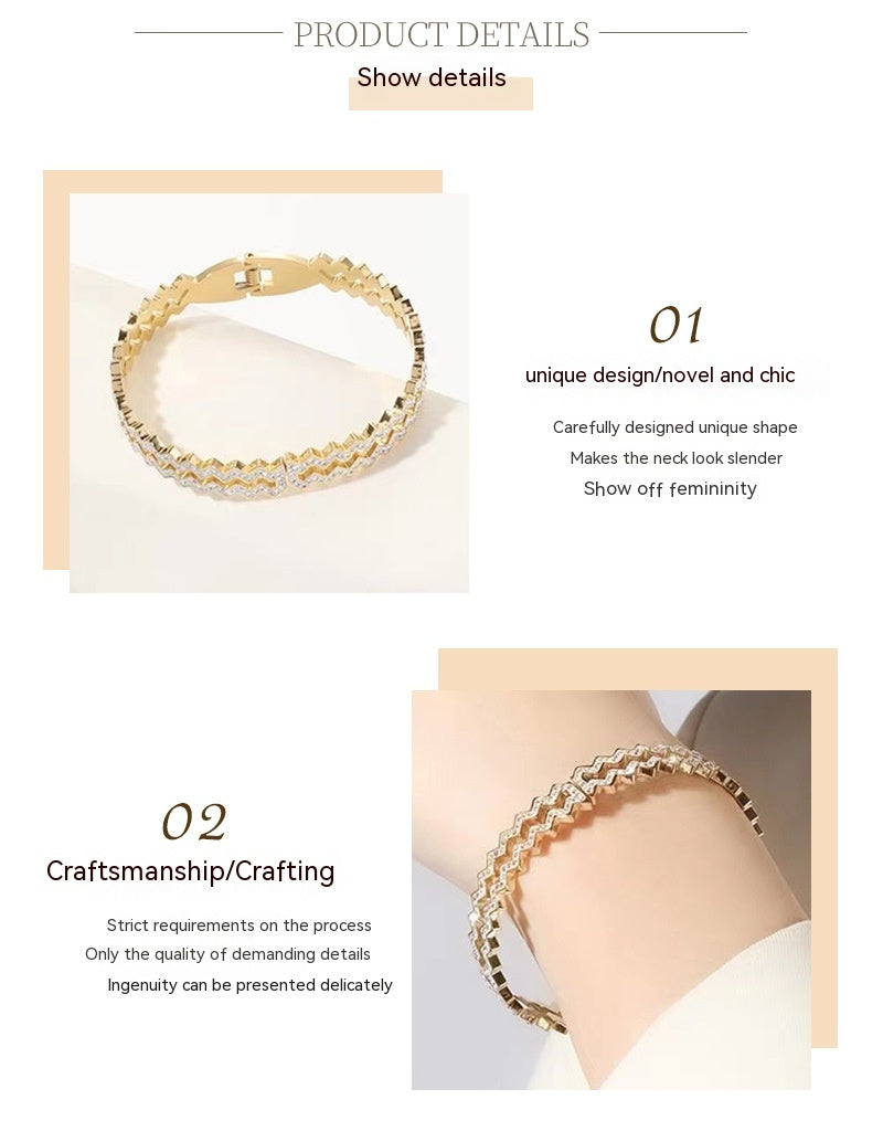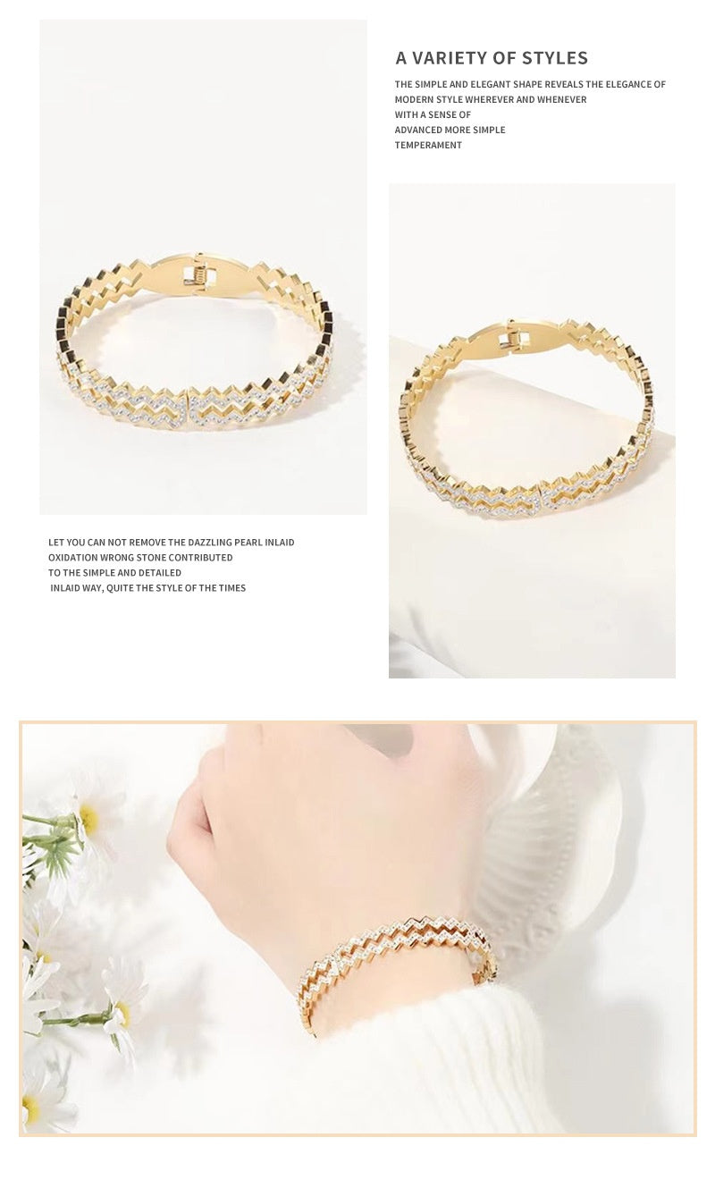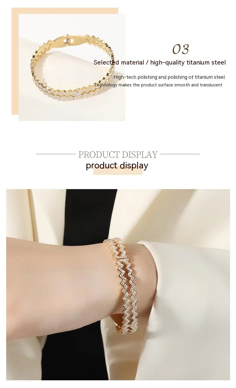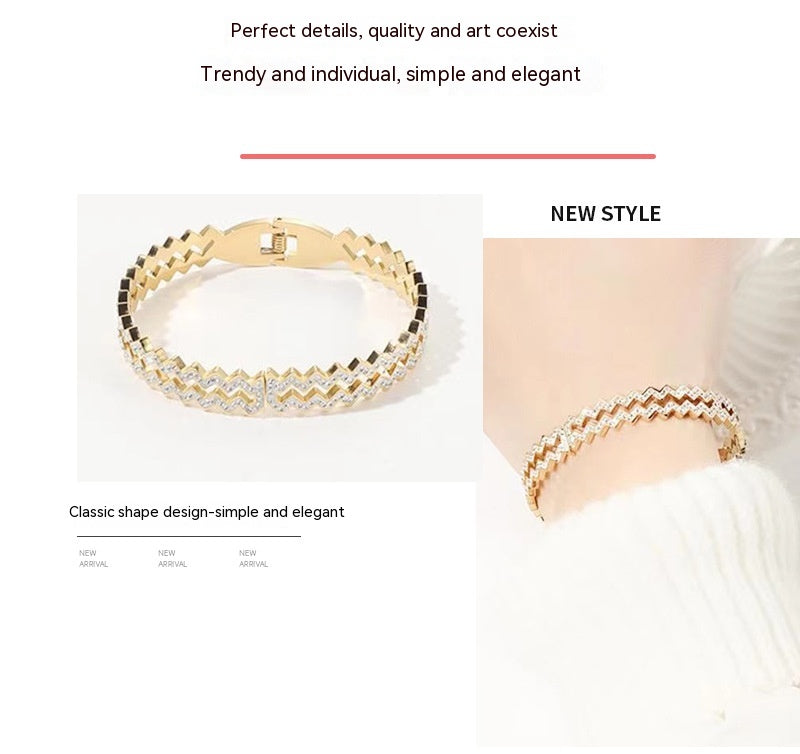 Women's Wave Diamond Simple Steel Bracelet