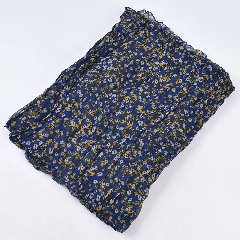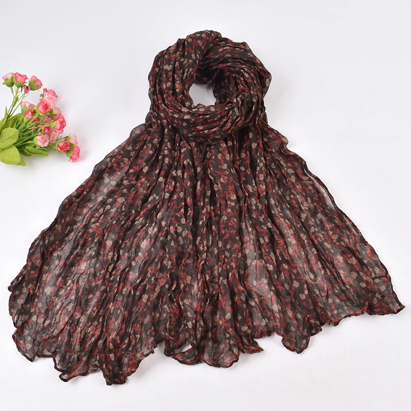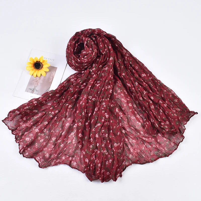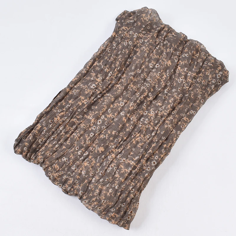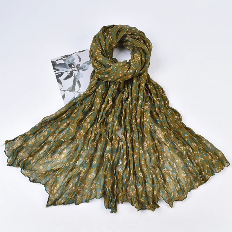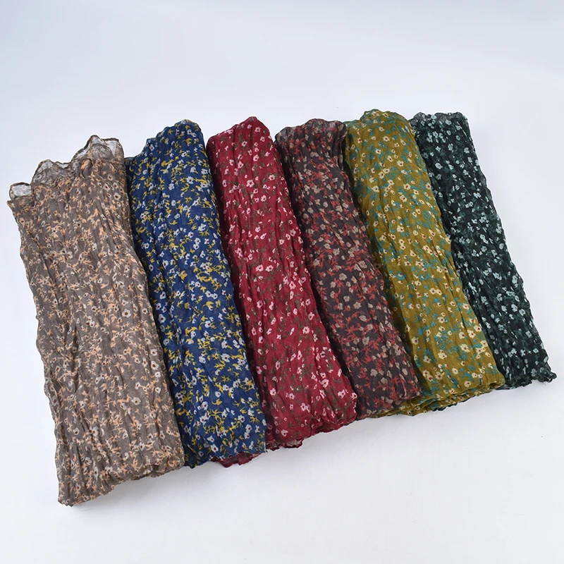 Autumn and Winter New Bali Yarn Crease Fresh Small Fragmented Flower Long Scarf High Quality Bali Yarn Printed Scarf Shawl