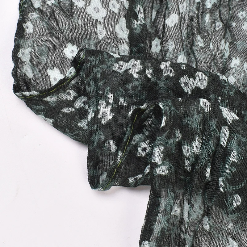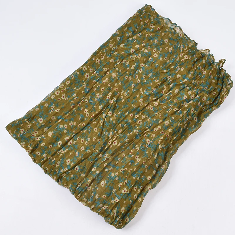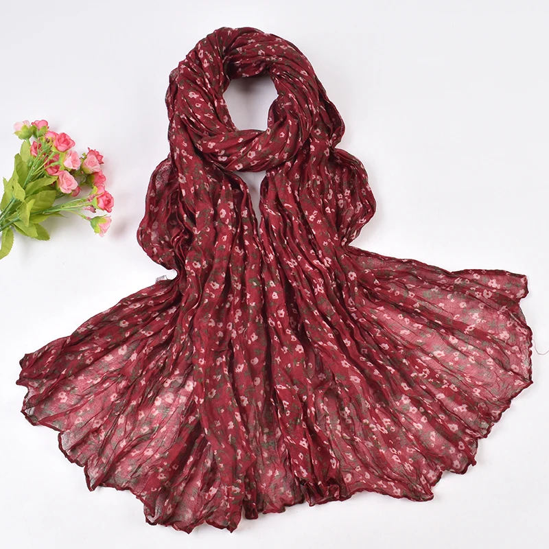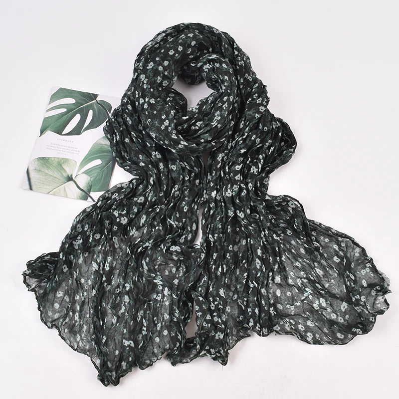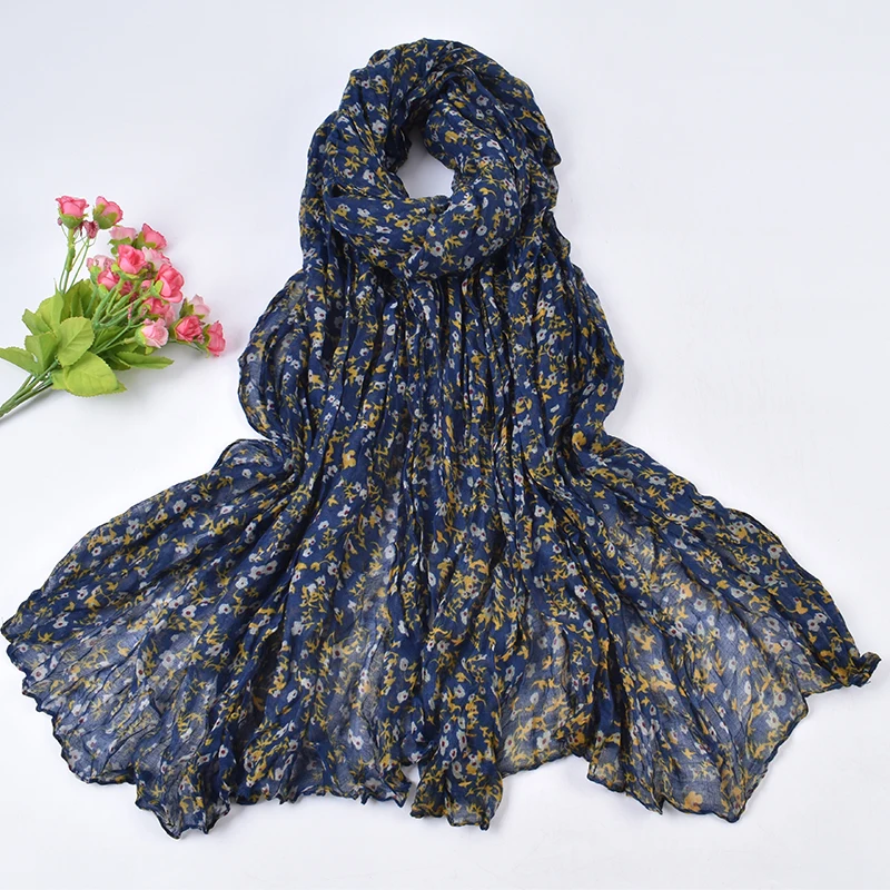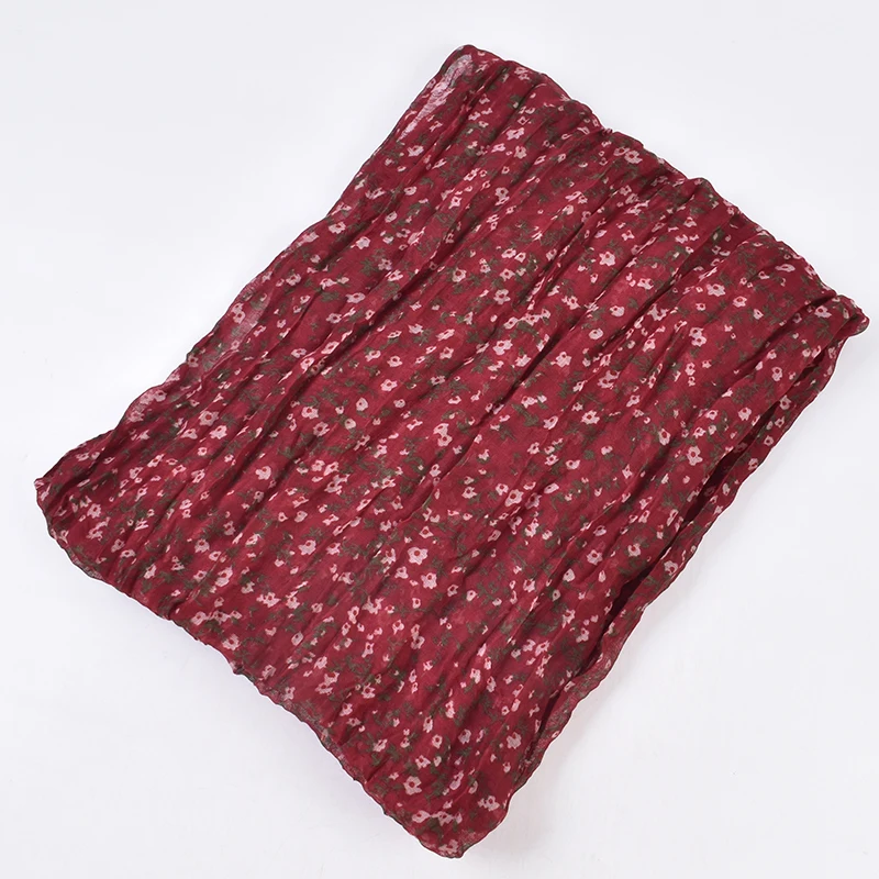 Autumn and Winter New Bali Yarn Crease Fresh Small Fragmented Flower Long Scarf High Quality Bali Yarn Printed Scarf Shawl